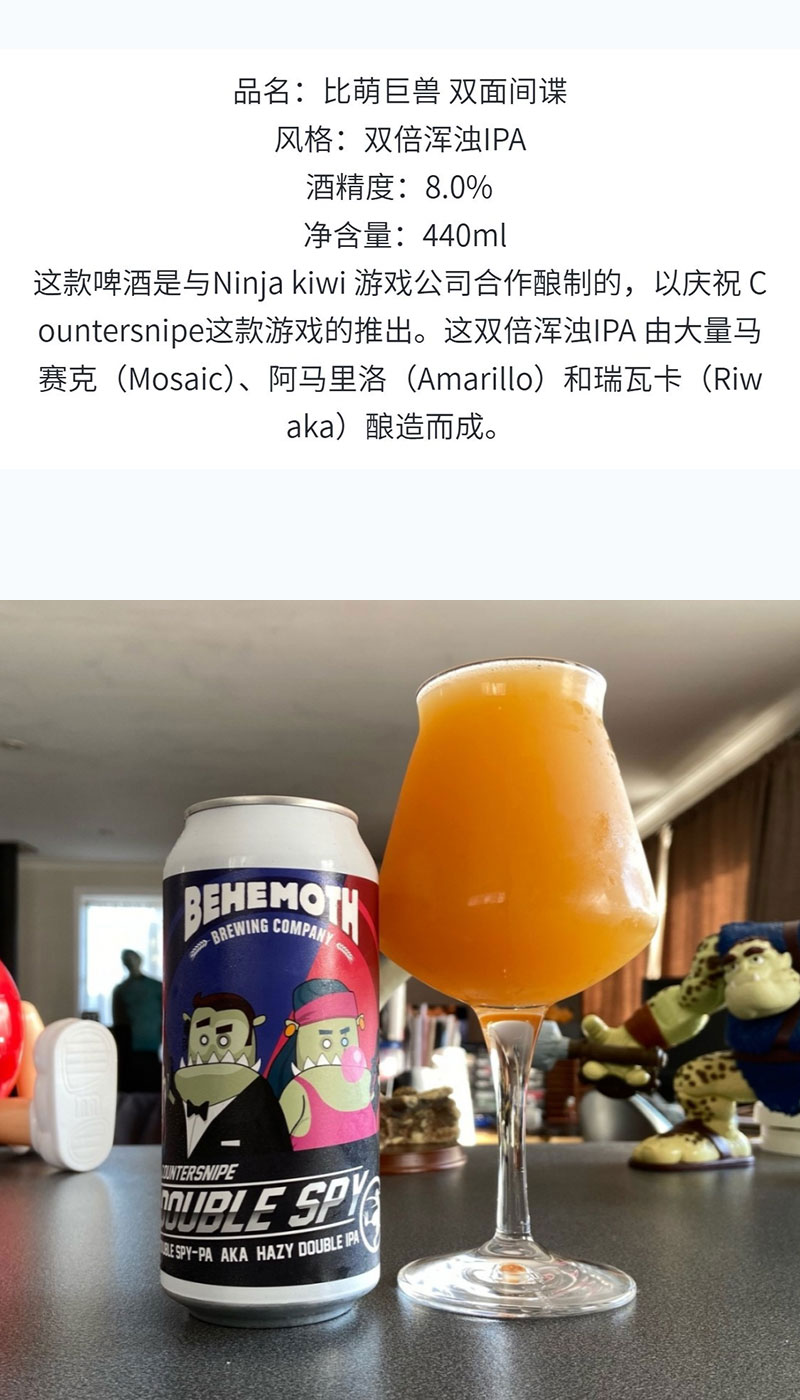 【冷库储存】新西兰比萌巨兽双面间谍双倍浑浊IPA啤酒8.0%vol