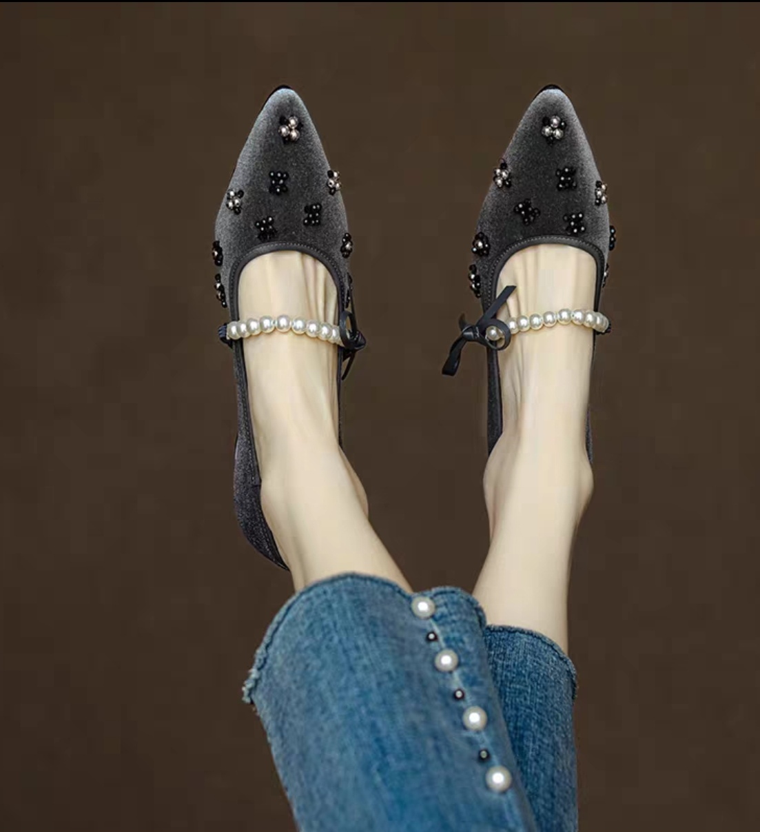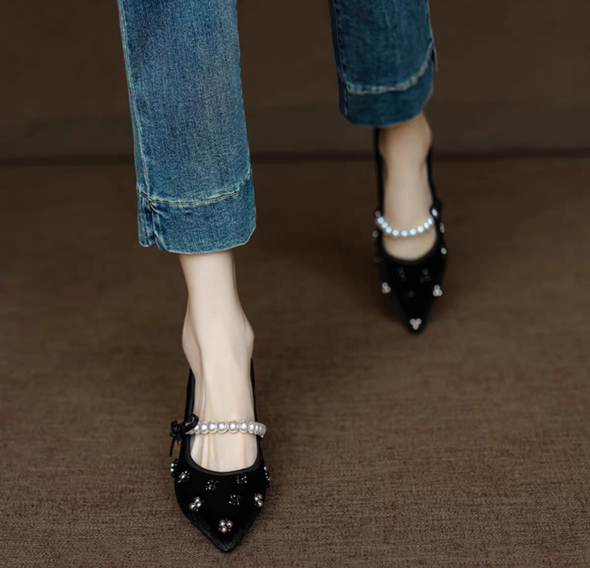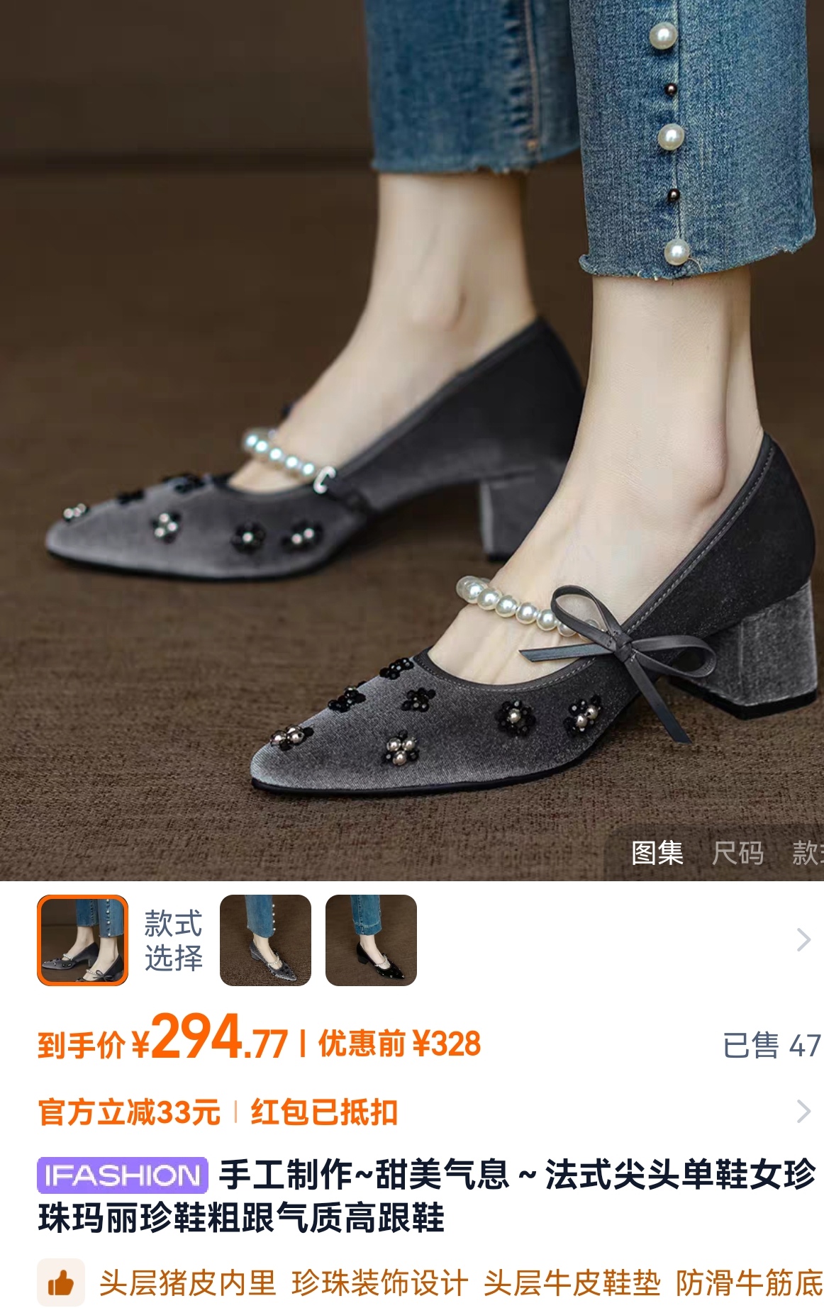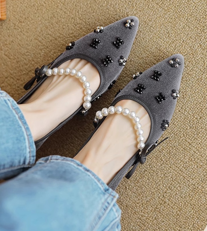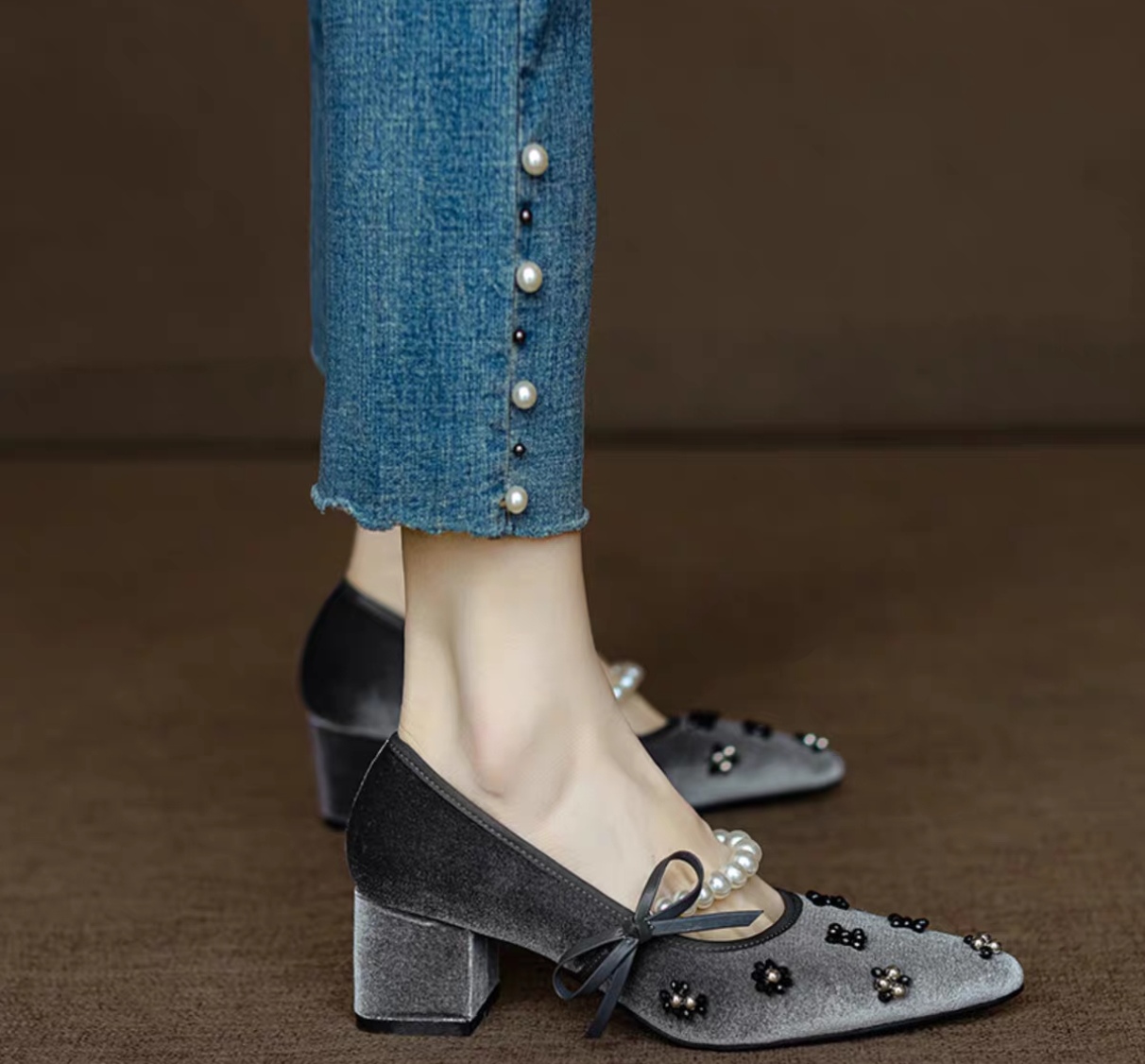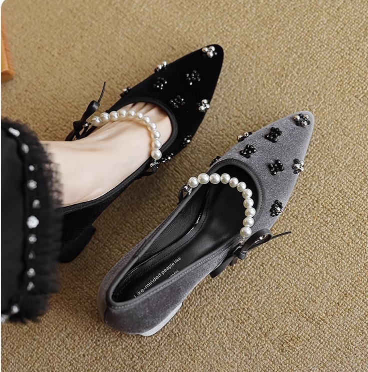 真丝金丝绒鞋面,透气轻柔,上脚轻便,方跟更稳。