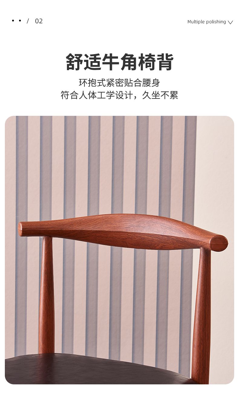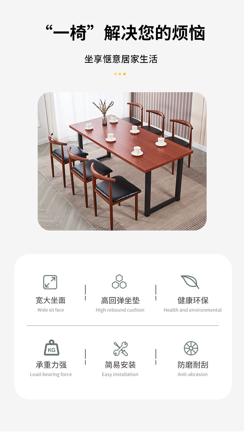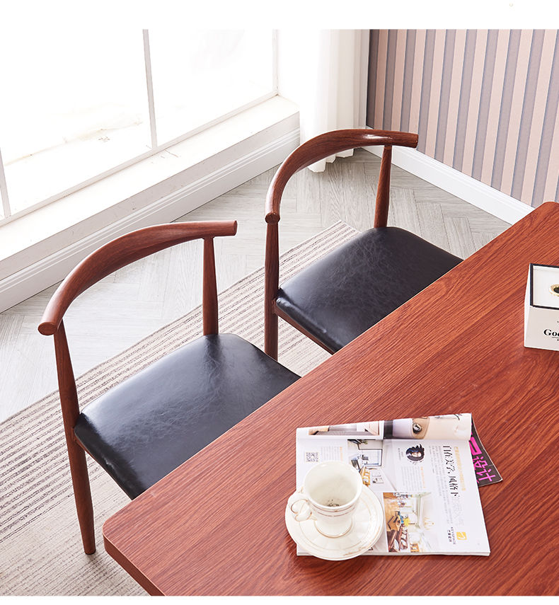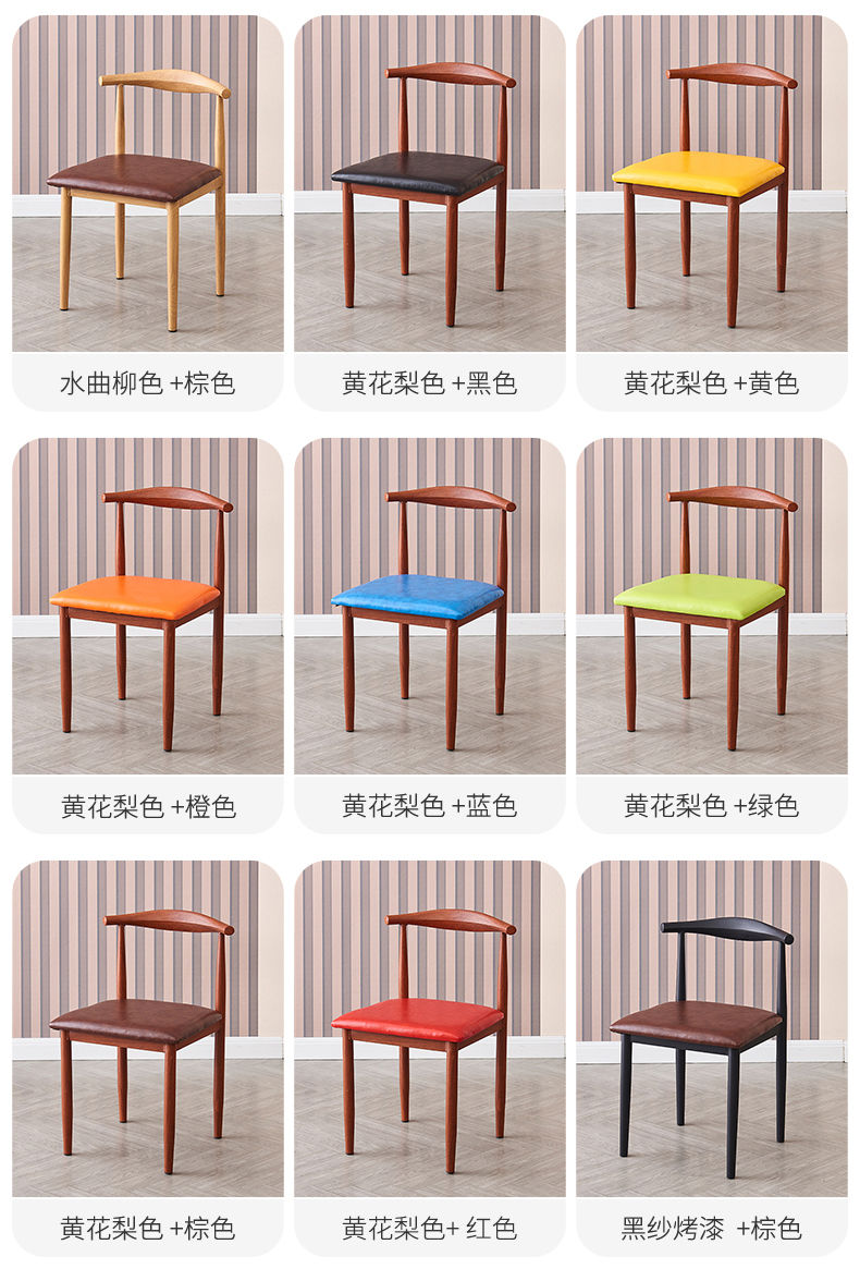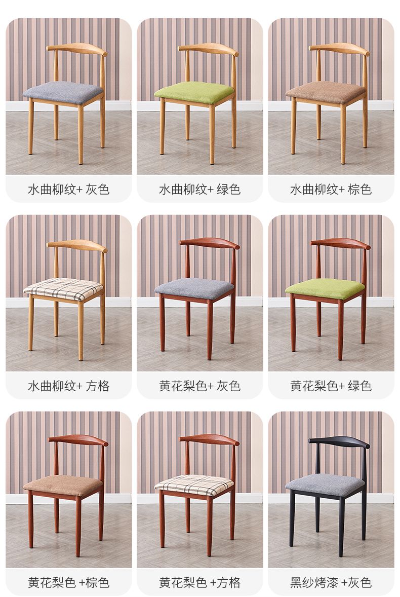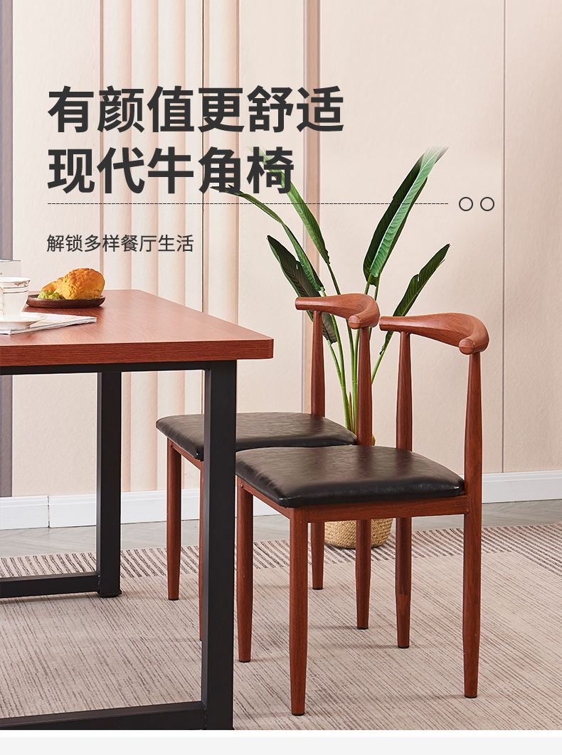 餐椅家用北欧靠背凳子书桌现代简约卧室女轻奢仿实木铁艺牛角椅子