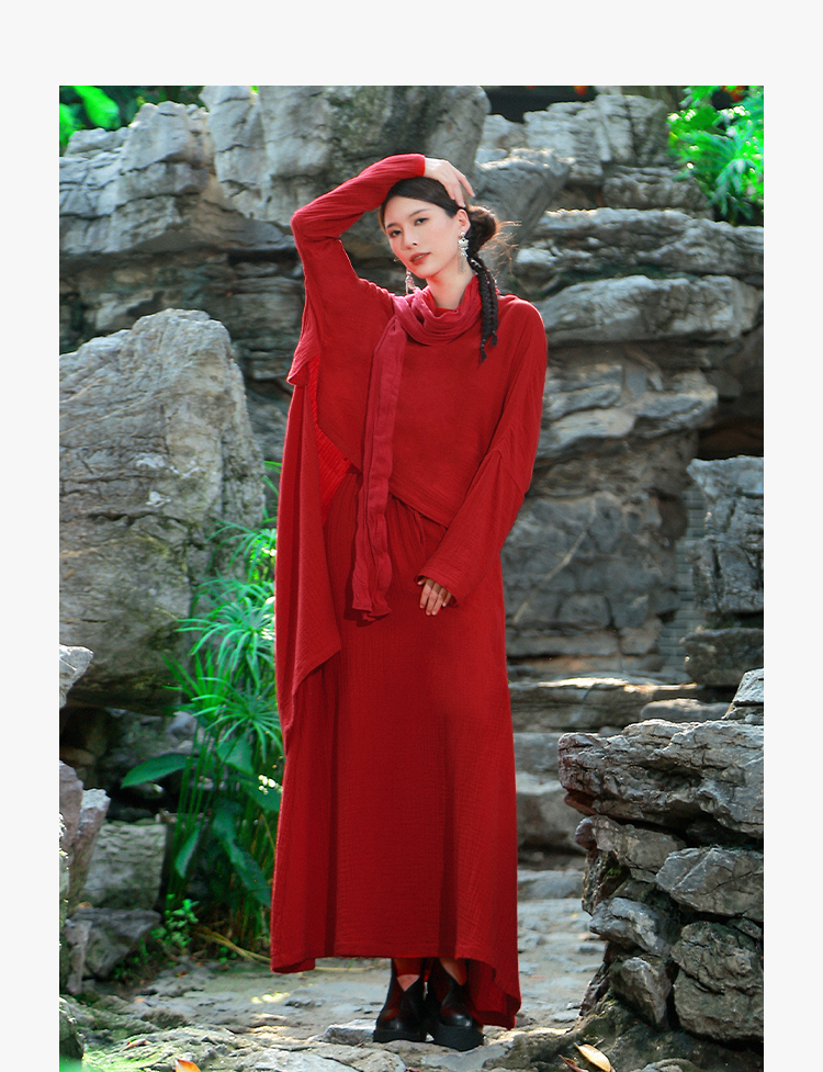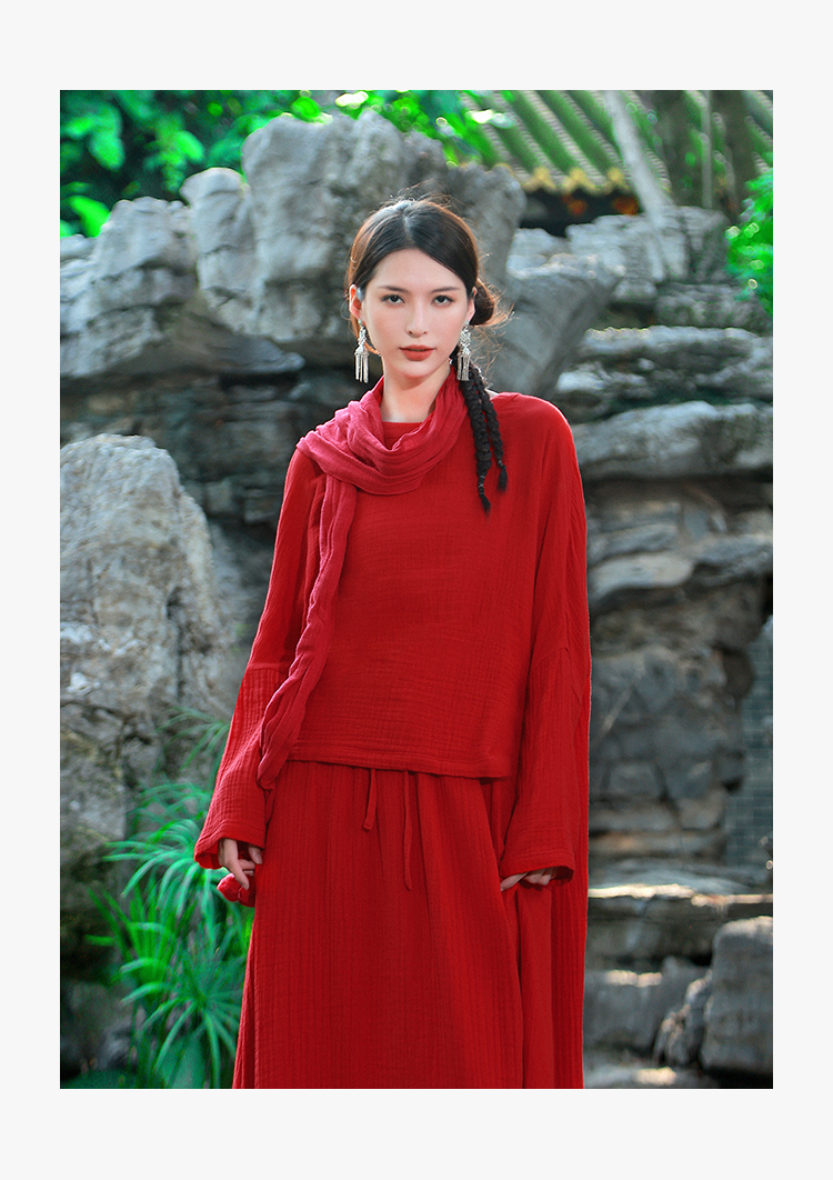 【杨丽萍花园同款新品】岚岫游云上衣半裙套装 | 大红色 粉色 | 少量现货