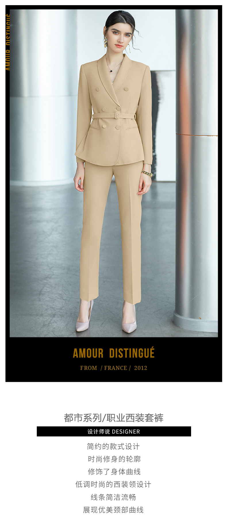 AD职场女装2022春季新款chic西装外套女高级感卡其色职业西服套装