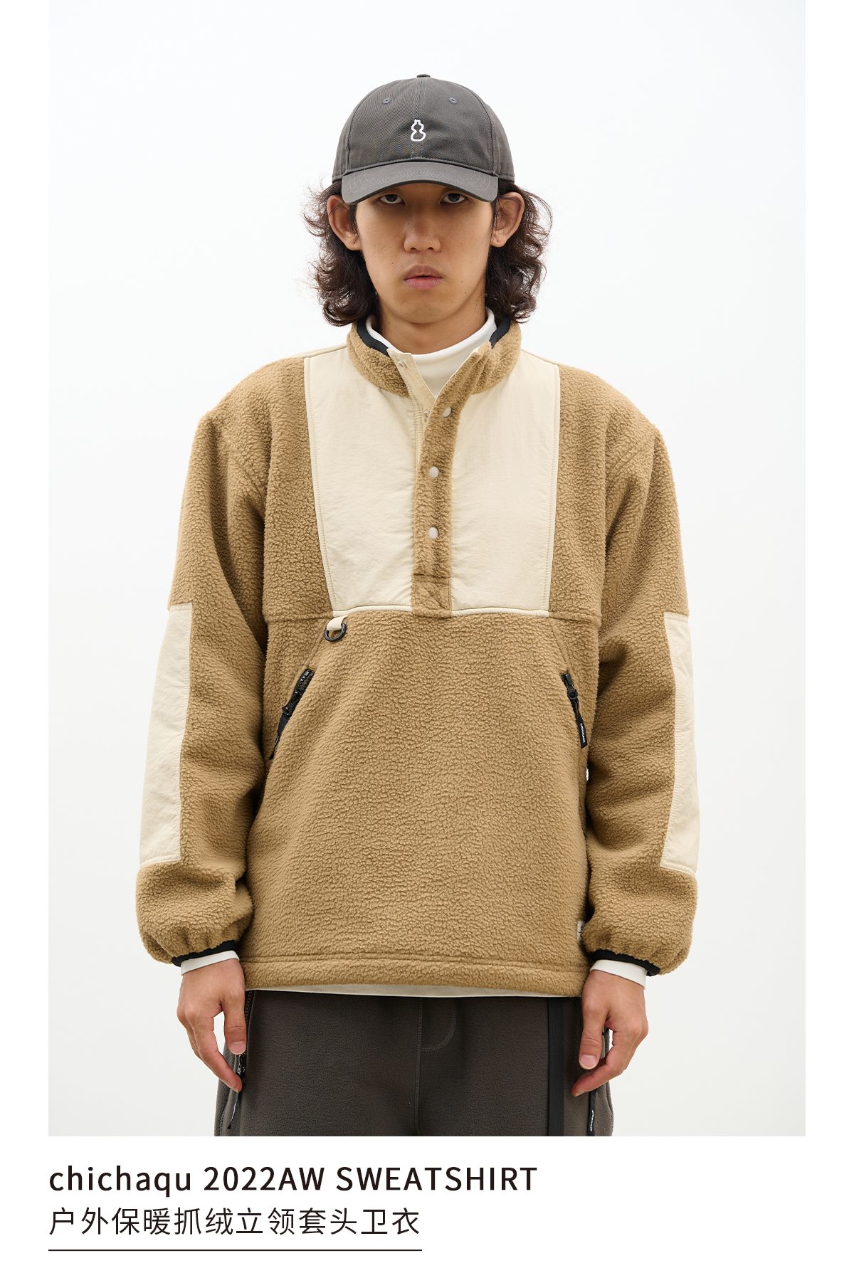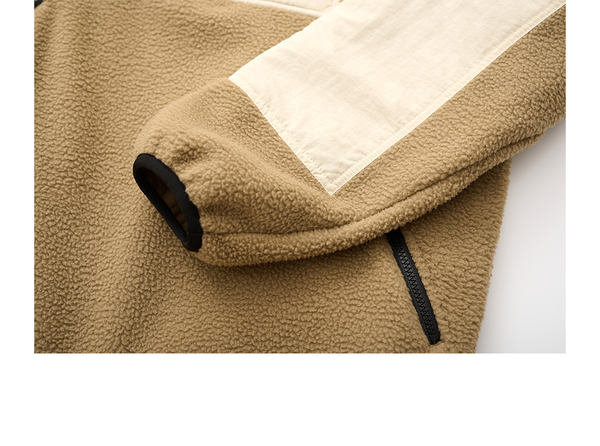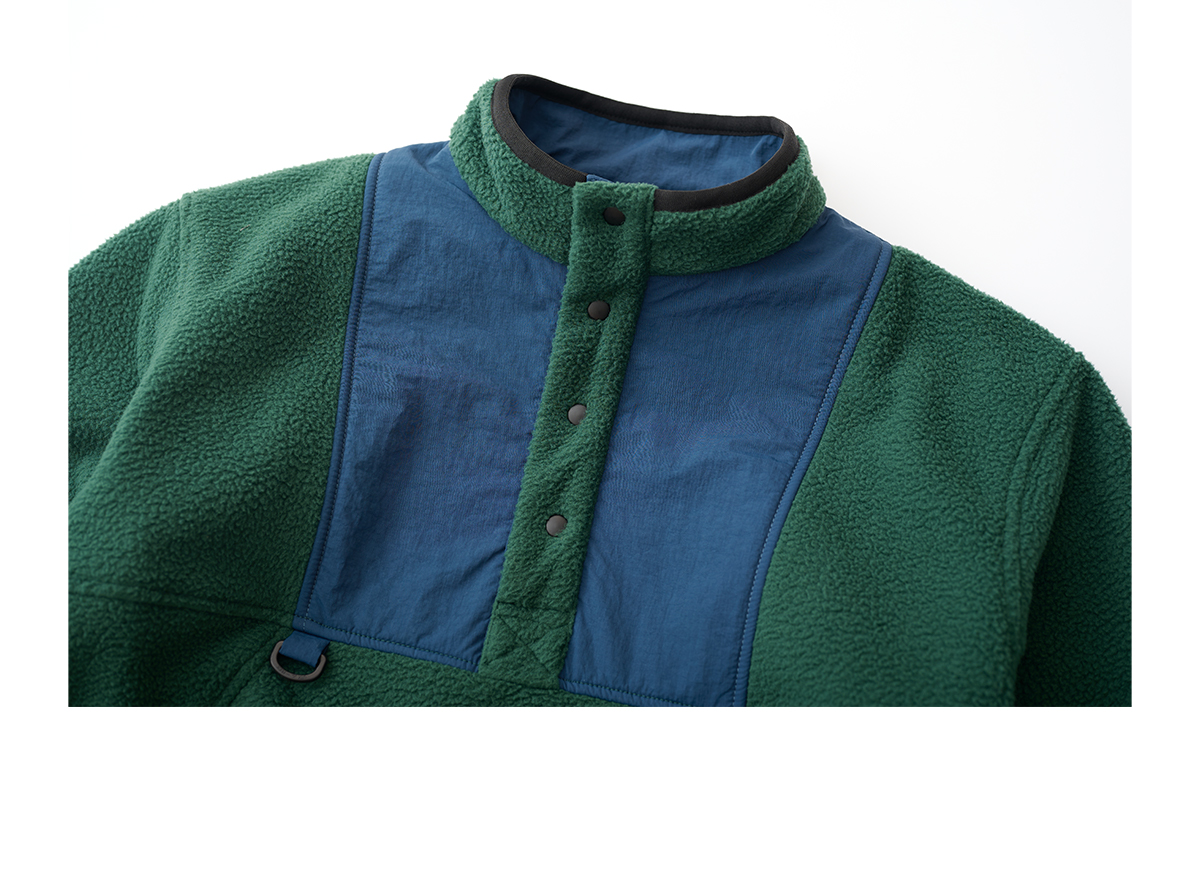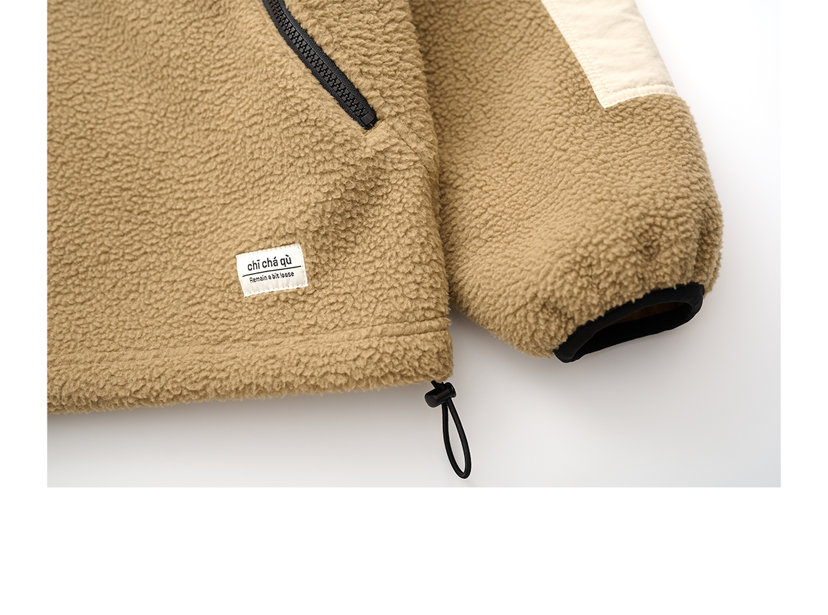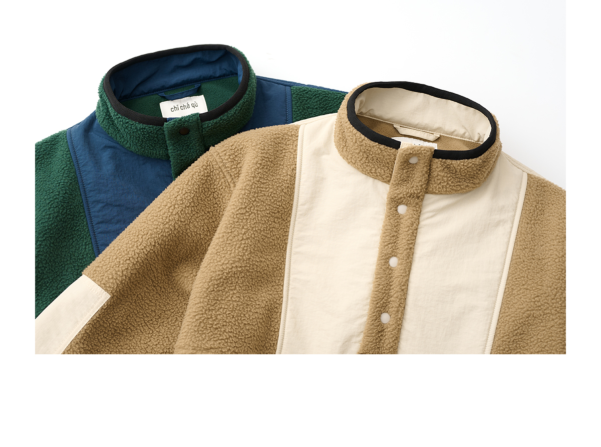吃茶去chichaqu拼接抓绒立领套头外套摇粒绒户外保暖宽松