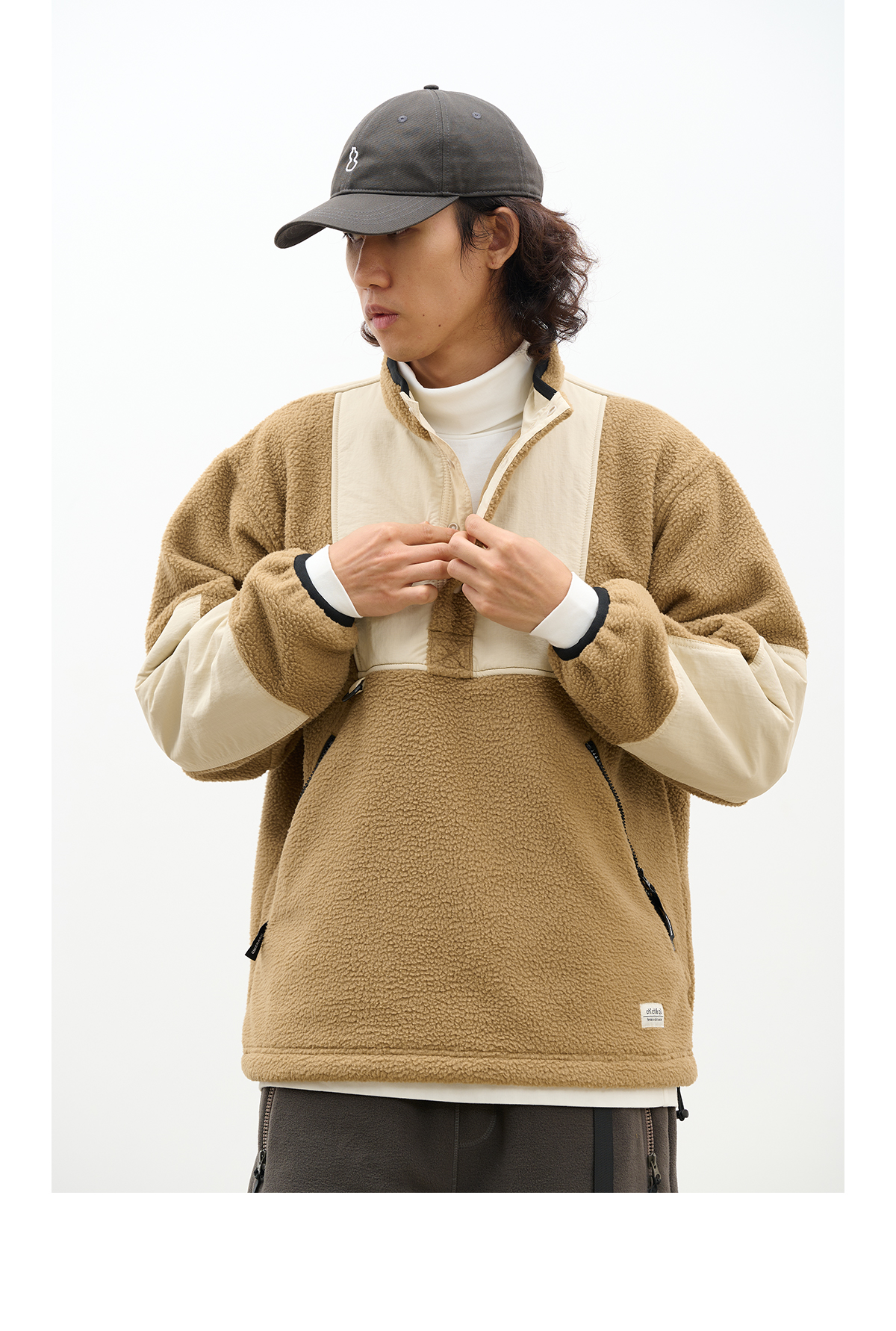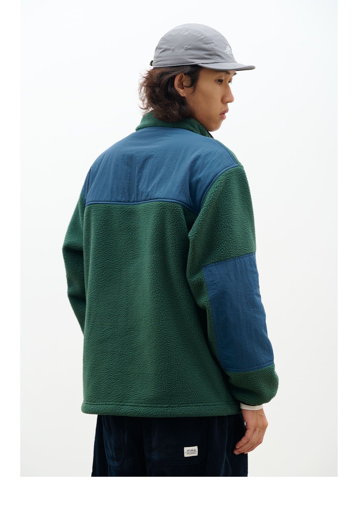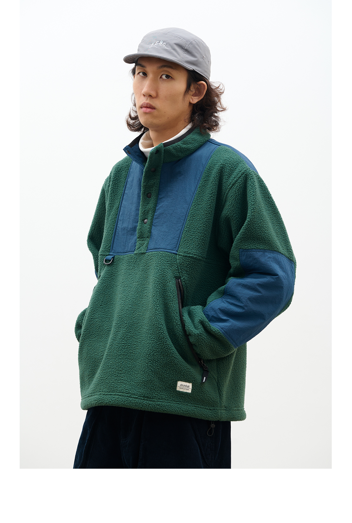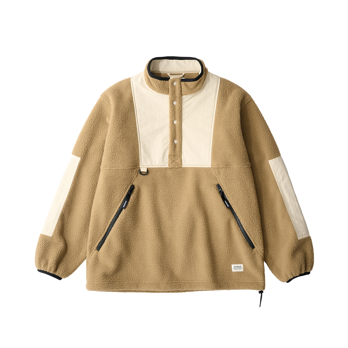 吃茶去chichaqu拼接抓绒立领套头外套摇粒绒户外保暖宽松
