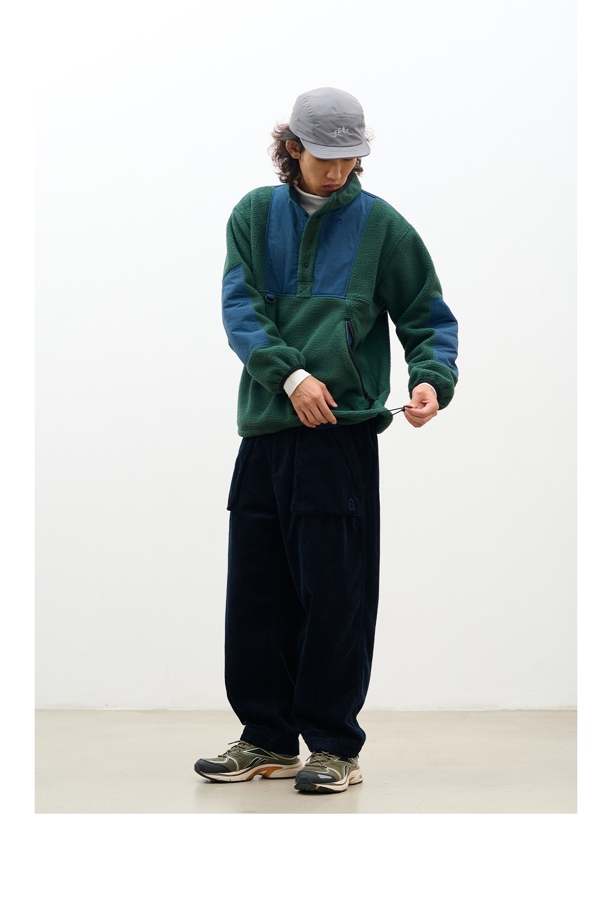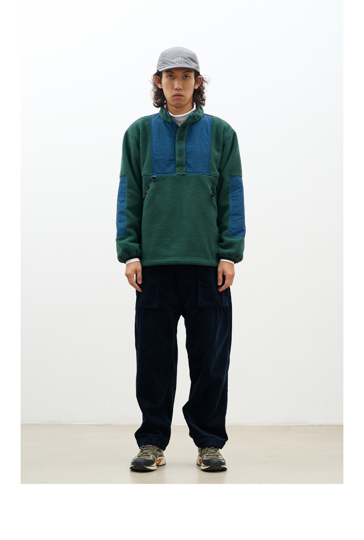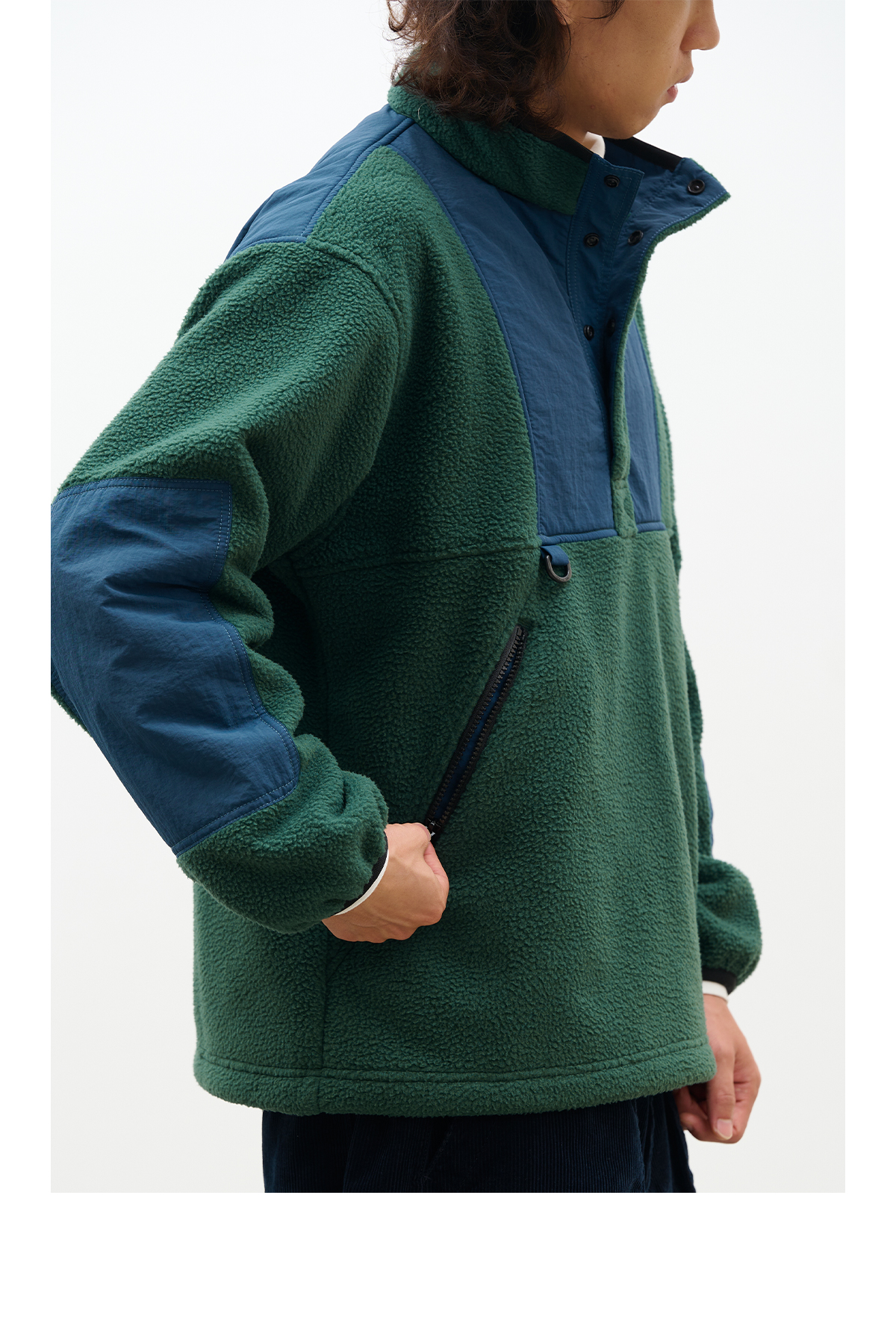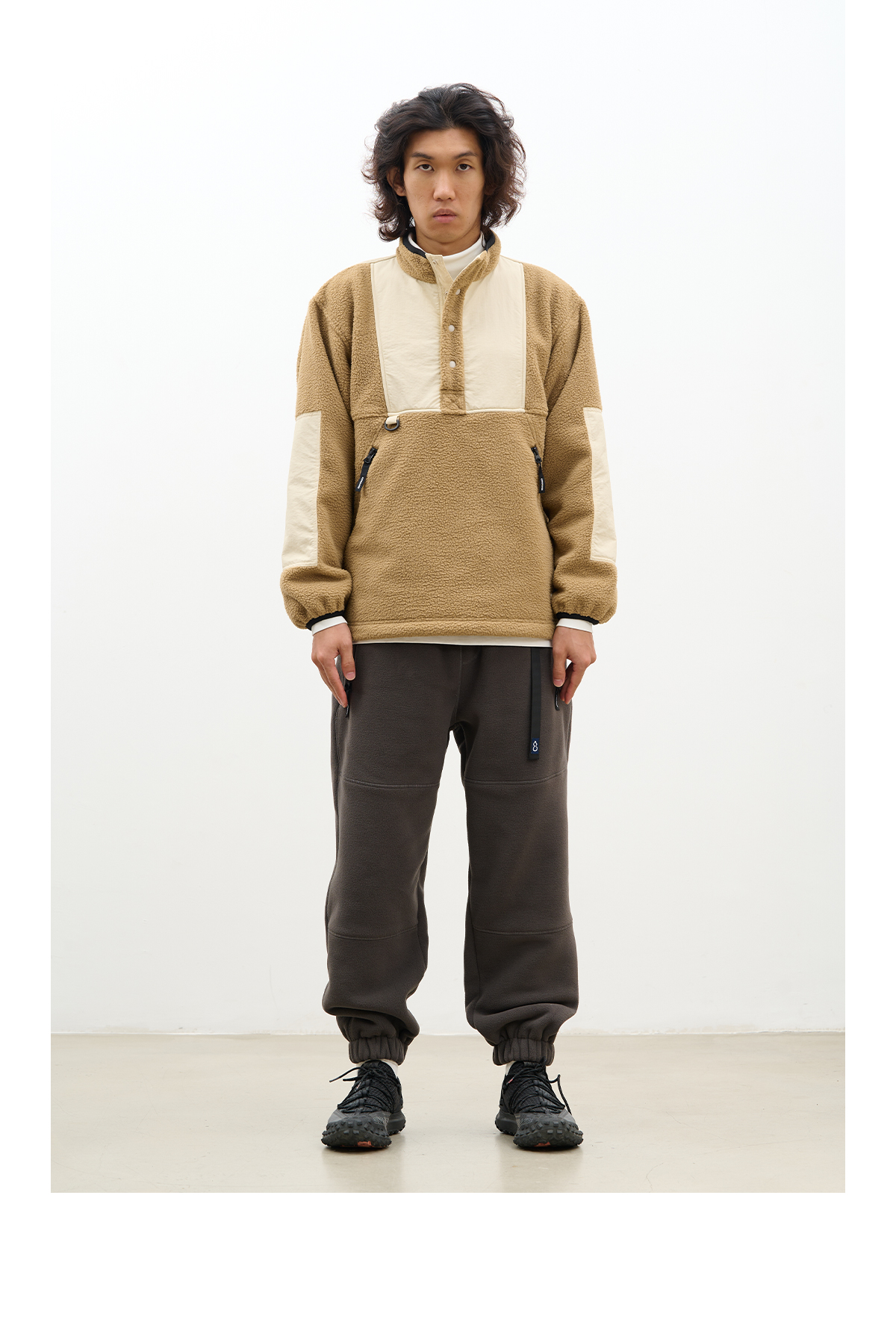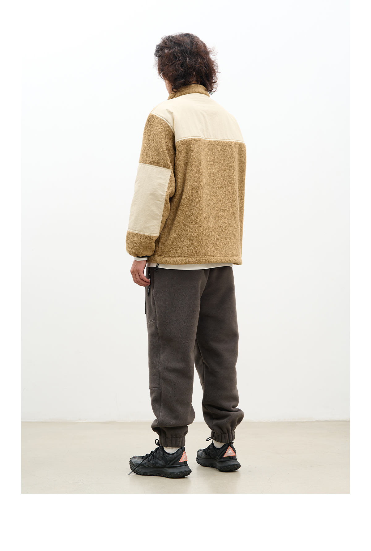 吃茶去chichaqu拼接抓绒立领套头外套摇粒绒户外保暖宽松