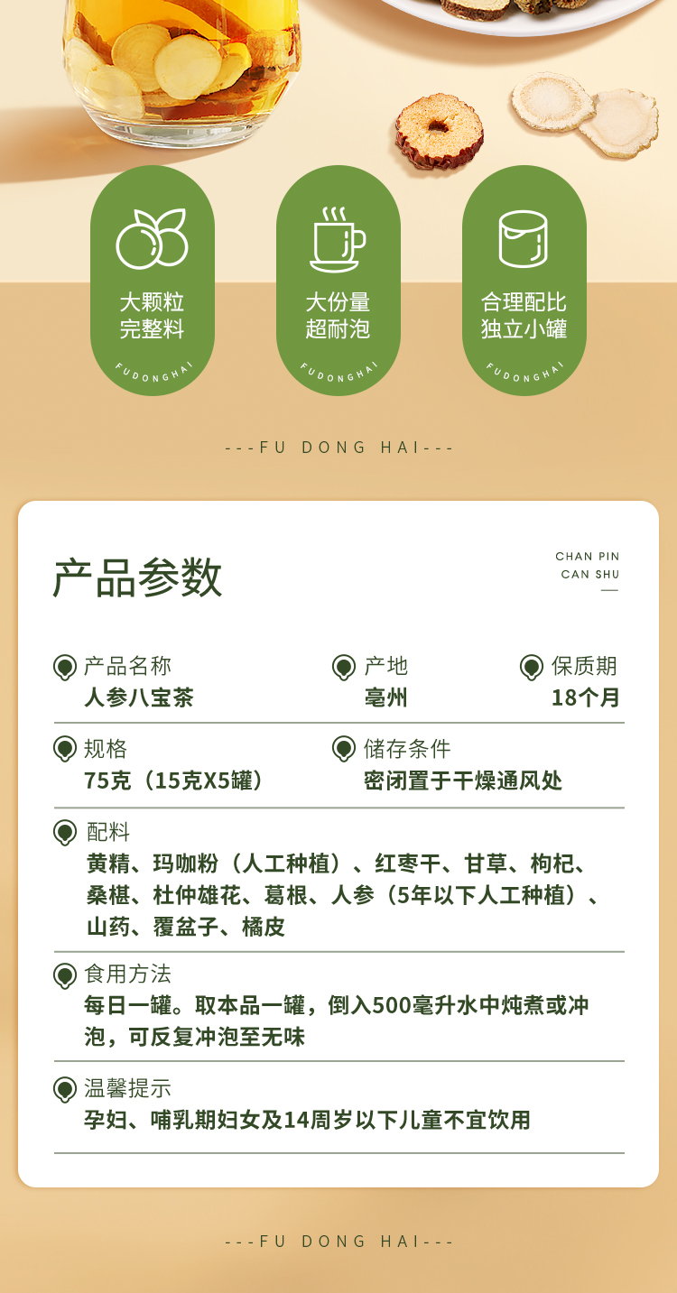 福东海 人参八宝茶75克(15克*5罐)/盒