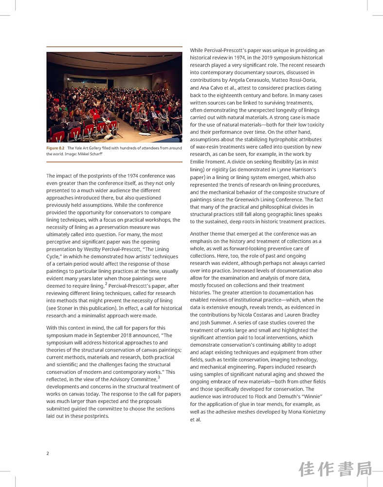 《保护画布》(Conserving Canvas)汇编了此次会议的论文集,呈现了一系列论文和海报,从全球视角阐述了该领域的历史、现状和未来需求。本书还收录了一份详尽的术语表,将成为保护修复人员宝贵的资源,并有望成为国际保护修复界的标准参考书。