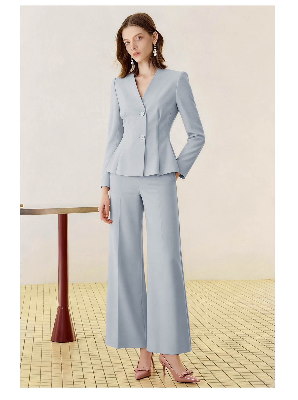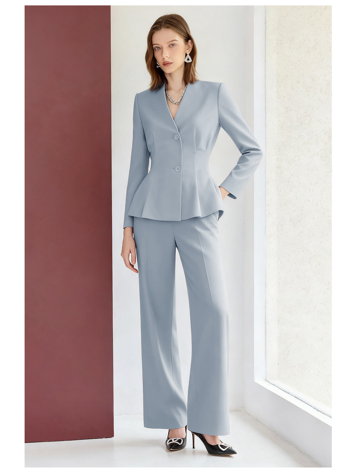 艾尚臣秋冬职业装女蓝色气质西装套装高级感酒店医美前台西服工装