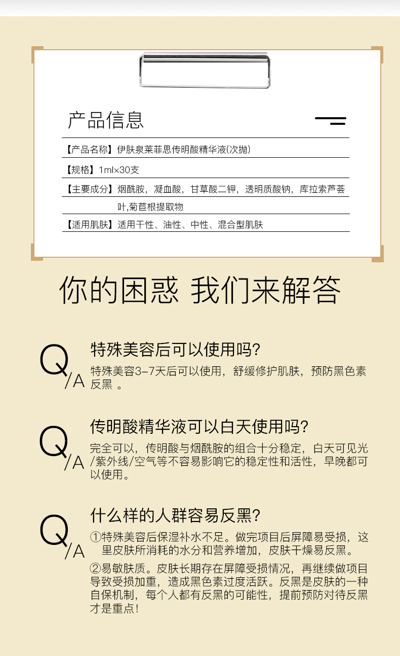 【社群专属】伊肤泉传明酸次抛精华液淡化色斑提亮肤色温和褪红精华液1ml*30支