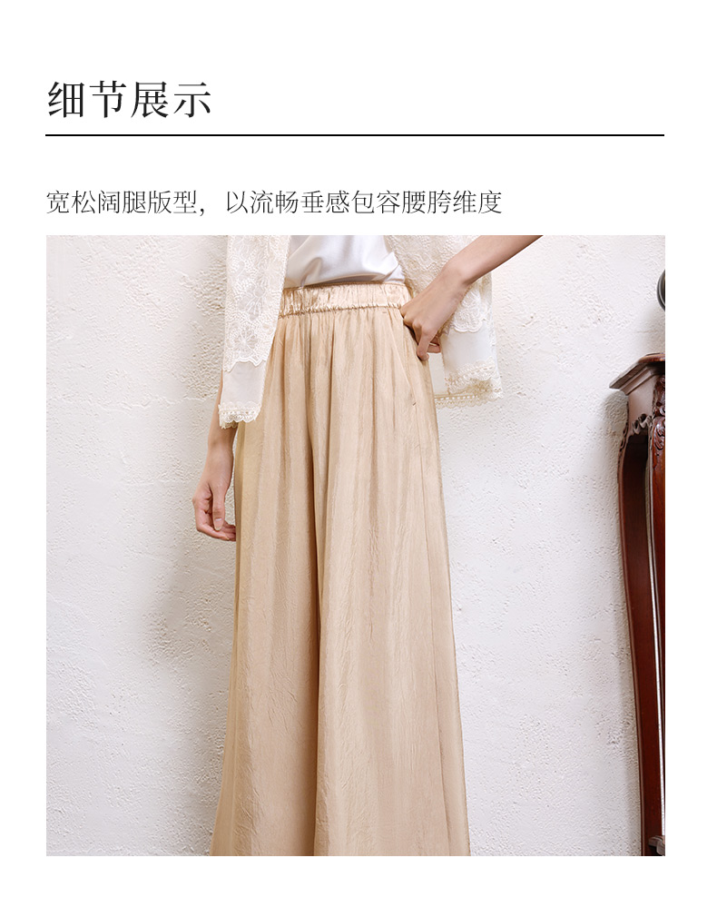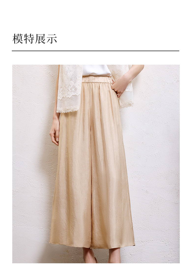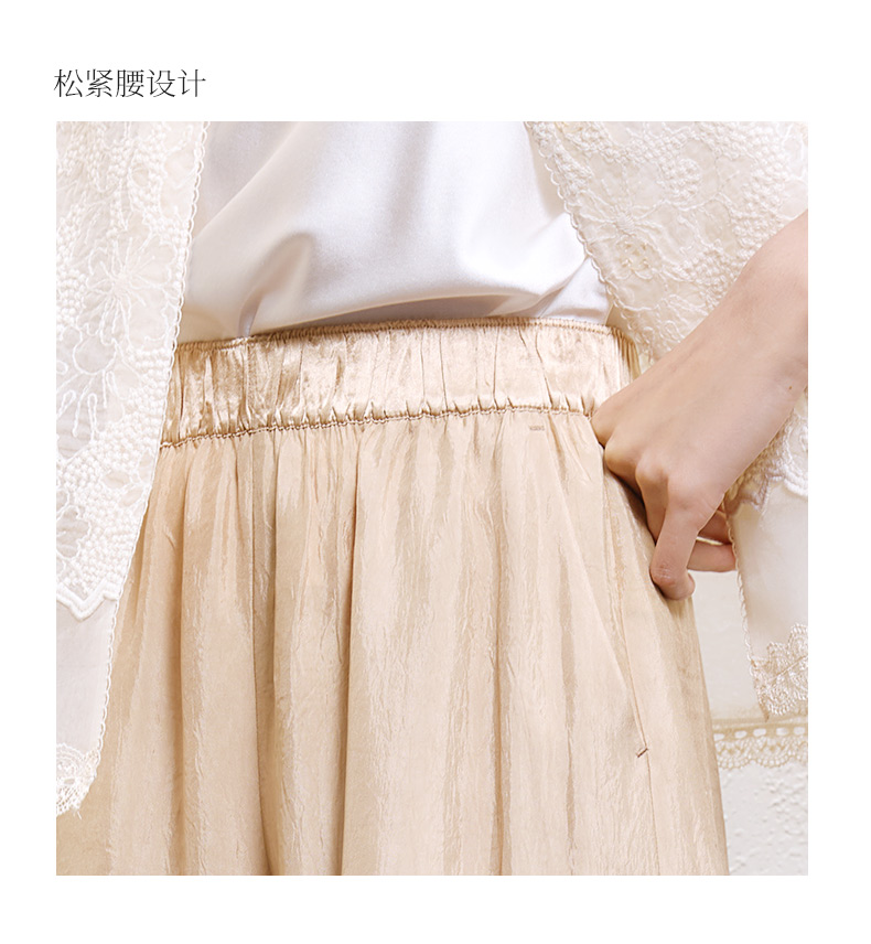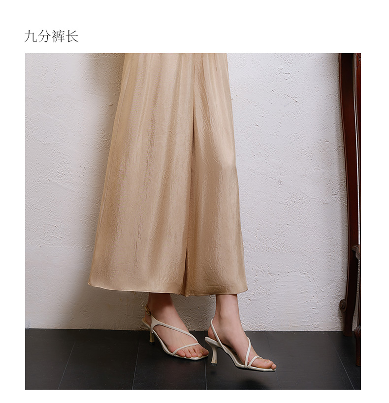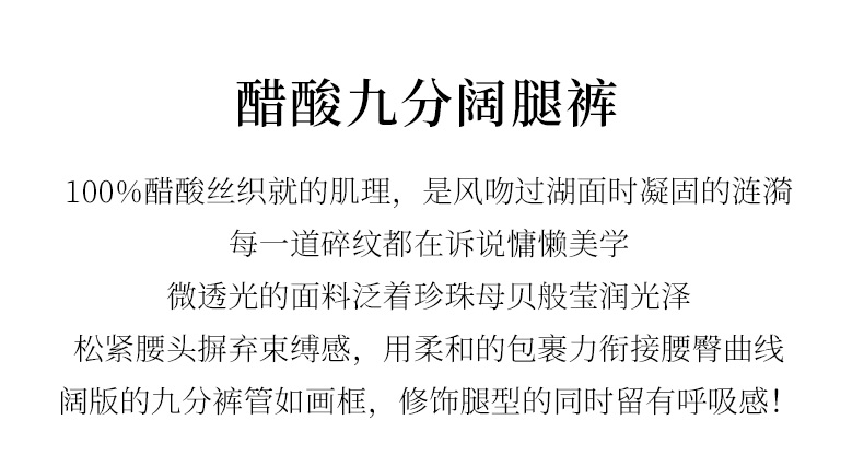 玳莎醋酸九分阔腿裤女2025年夏季新款松紧腰宽松通勤垂感休闲裤 FB36313