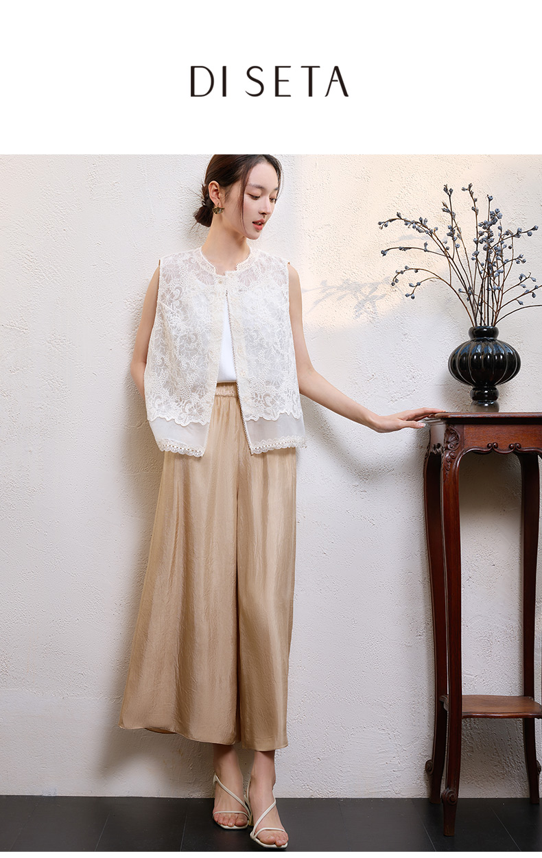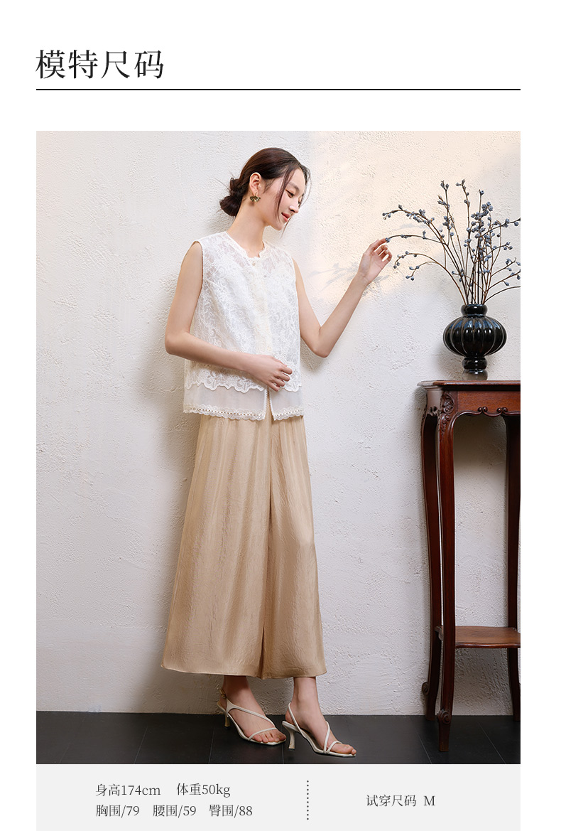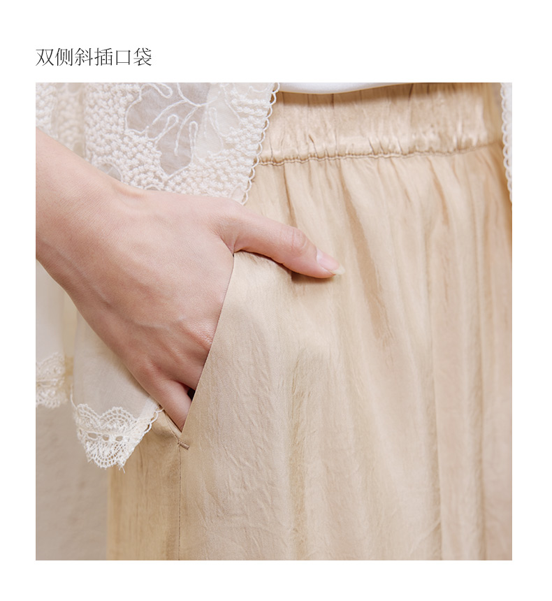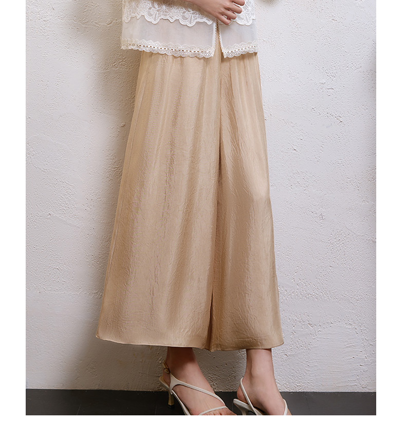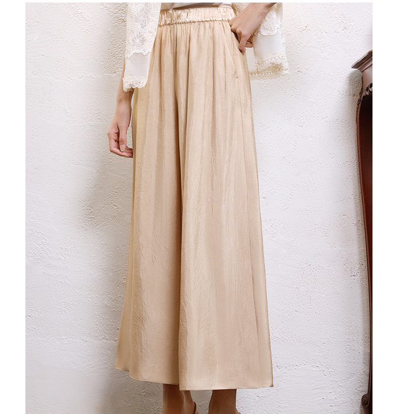 玳莎醋酸九分阔腿裤女2025年夏季新款松紧腰宽松通勤垂感休闲裤 FB36313