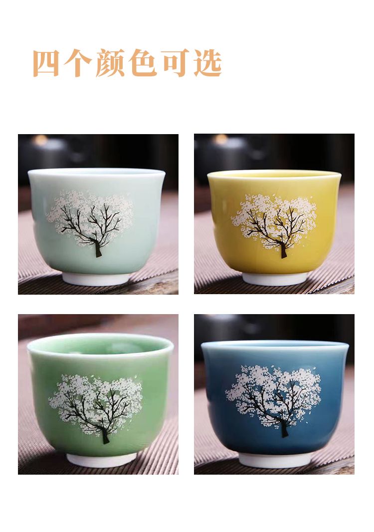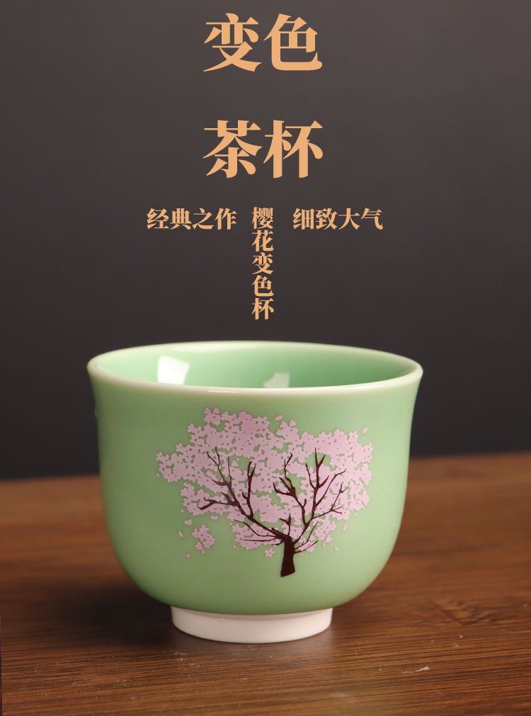 陶瓷变色茶杯樱花茶盏家用功夫茗杯