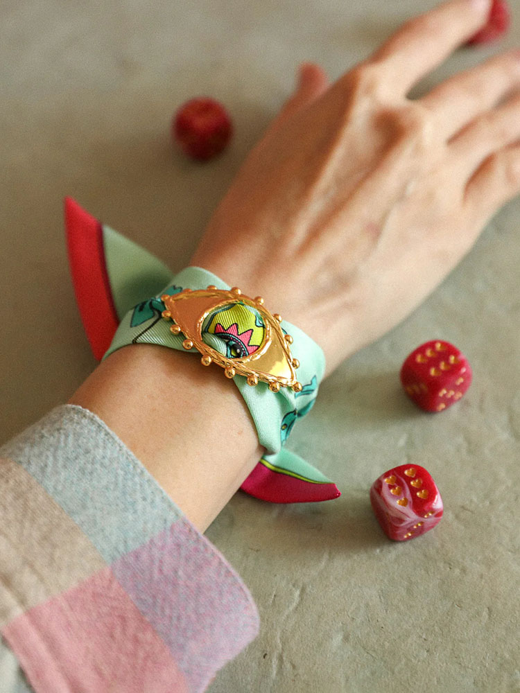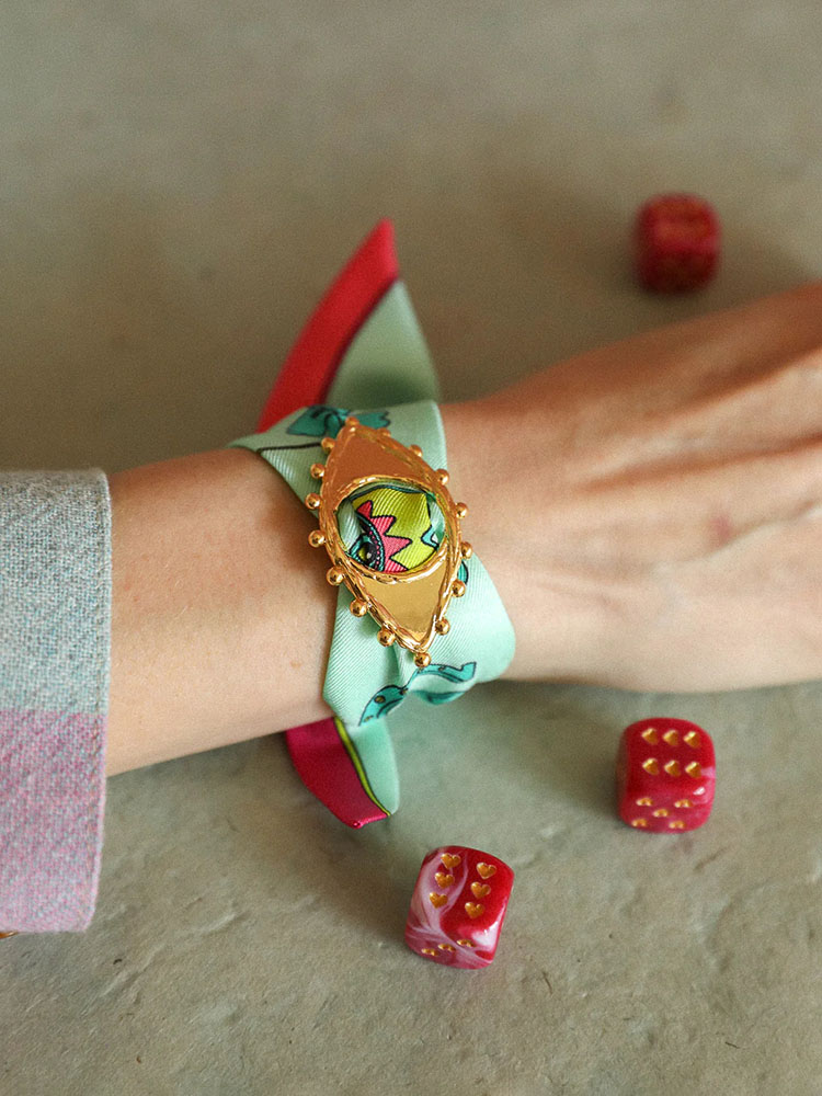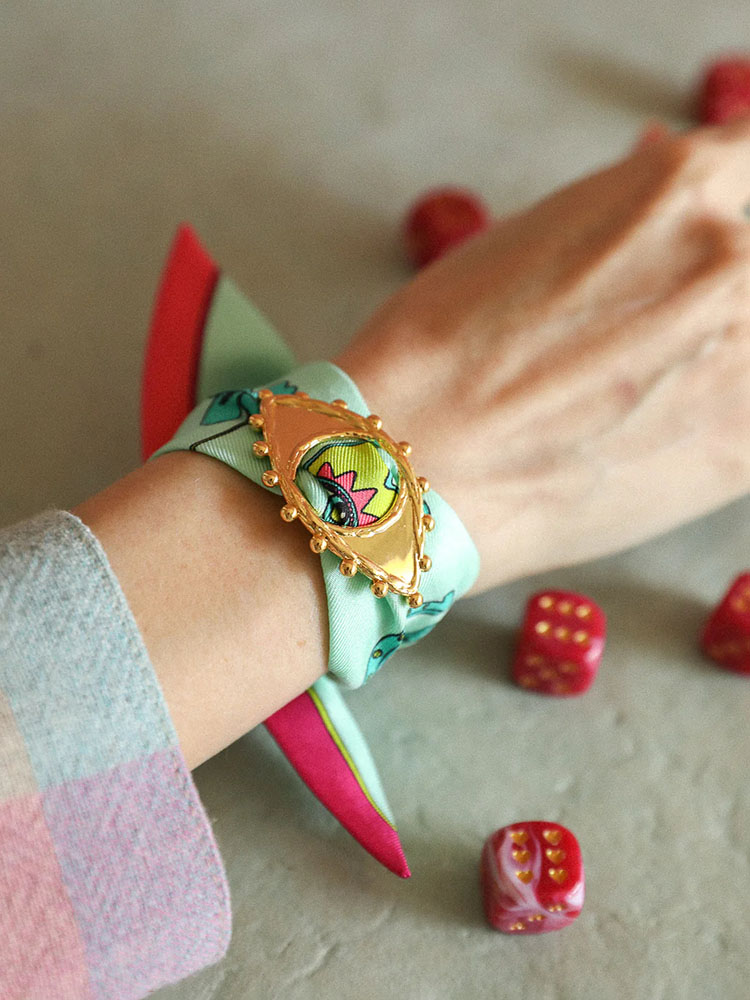 北京仓|AN-NEE-BONOEIL-薄荷绿 幸运予你 4cm丝巾 装饰扣手镯[法国设计师]