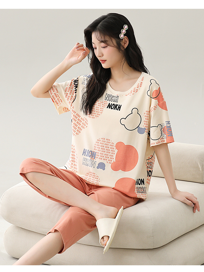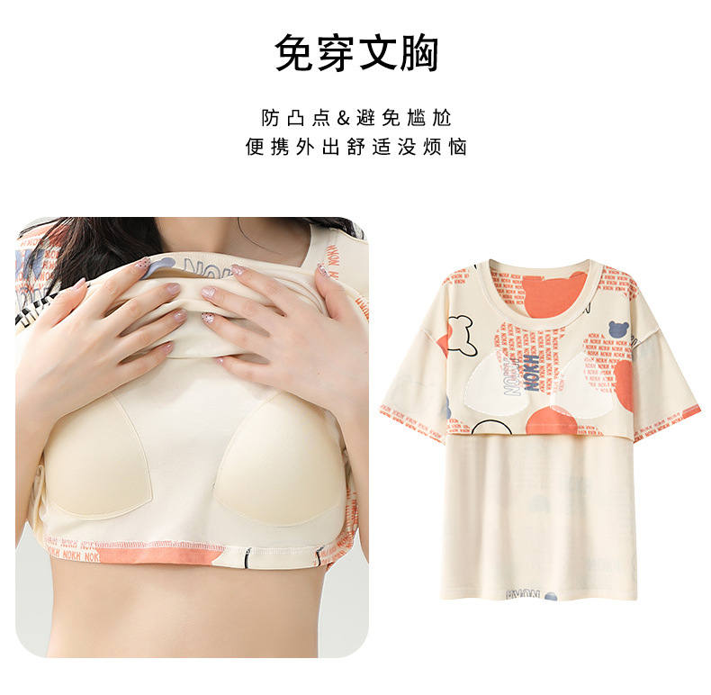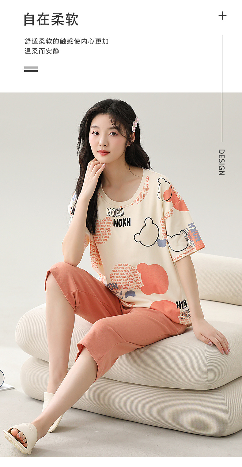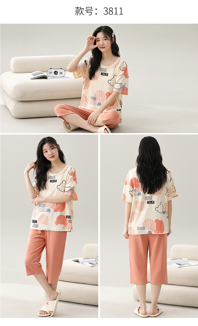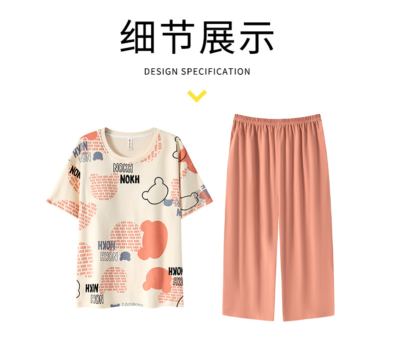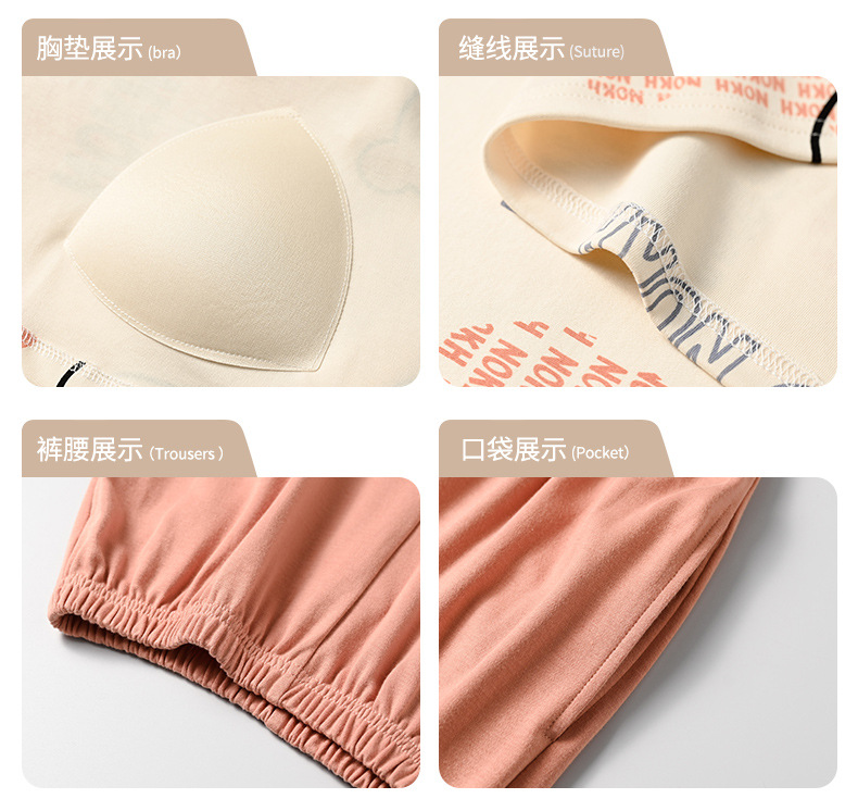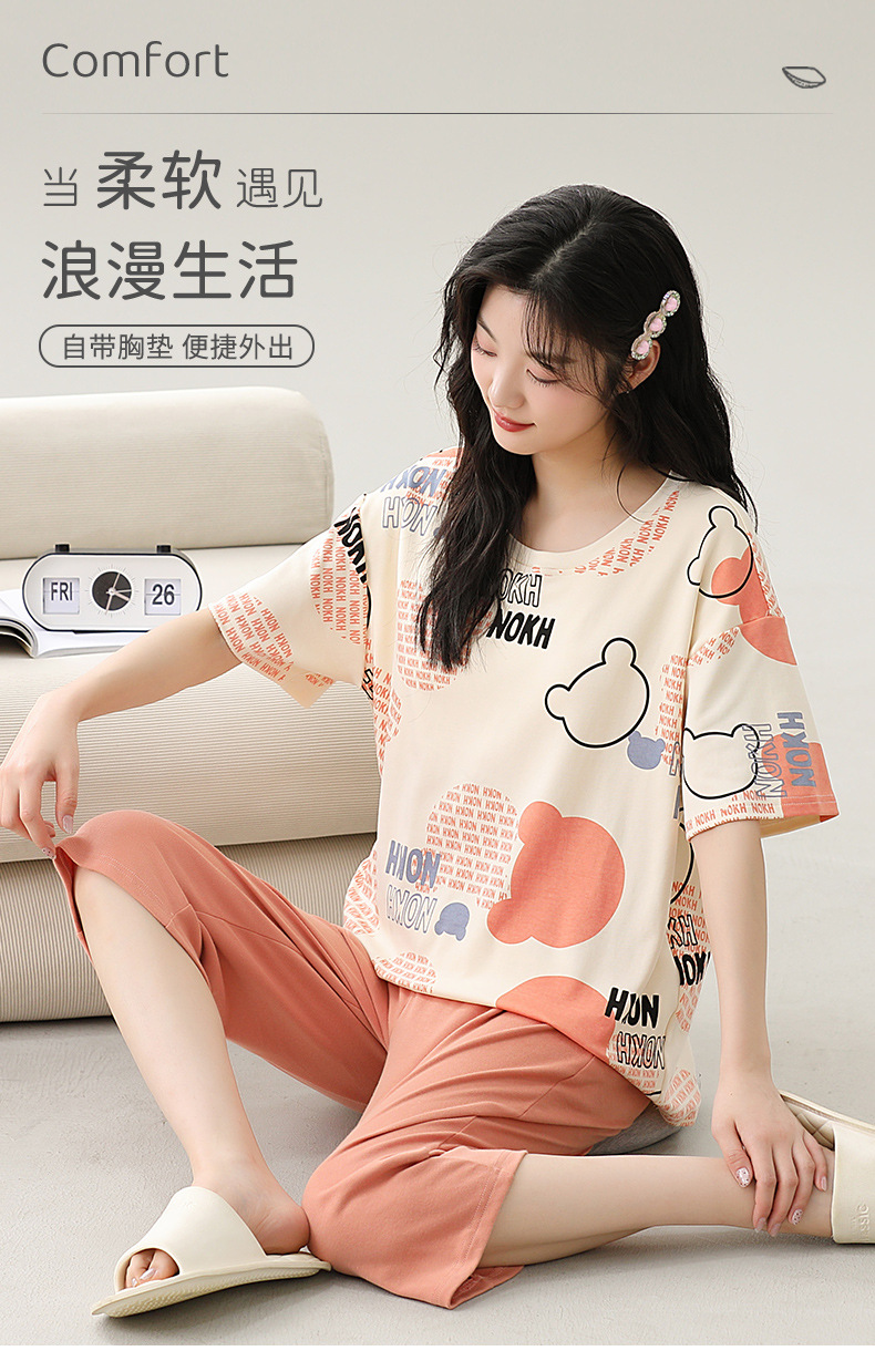 【自带胸垫!便携外出】新款睡衣女夏季短袖七分裤带胸垫可外穿夏款家居服套装。ry