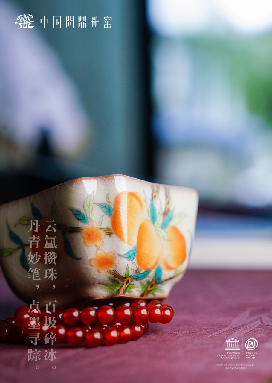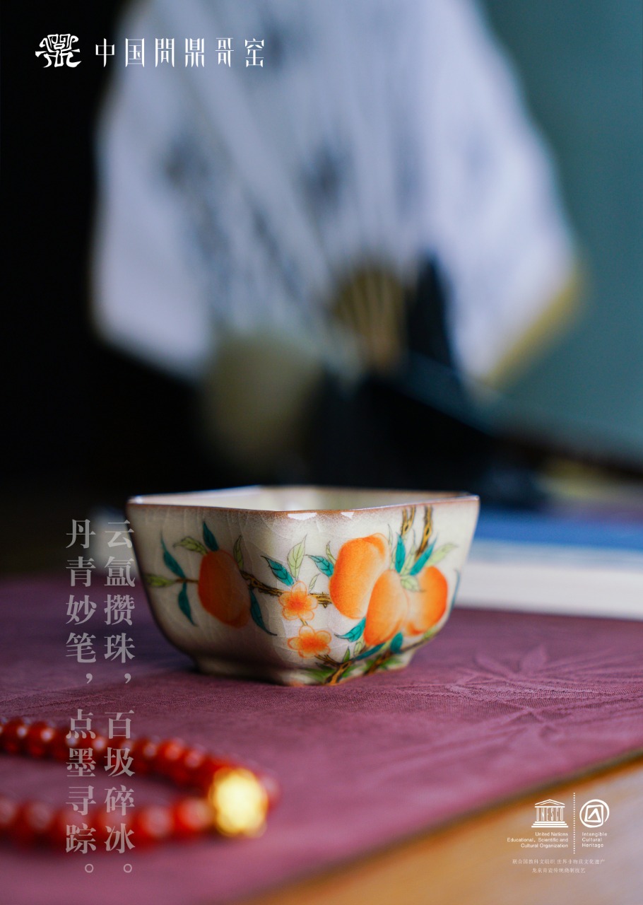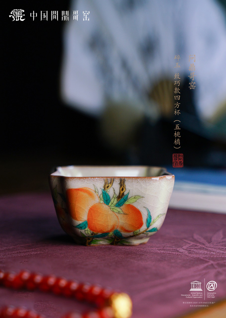 问鼎哥窑四方杯 (五桃橘)(缺货)