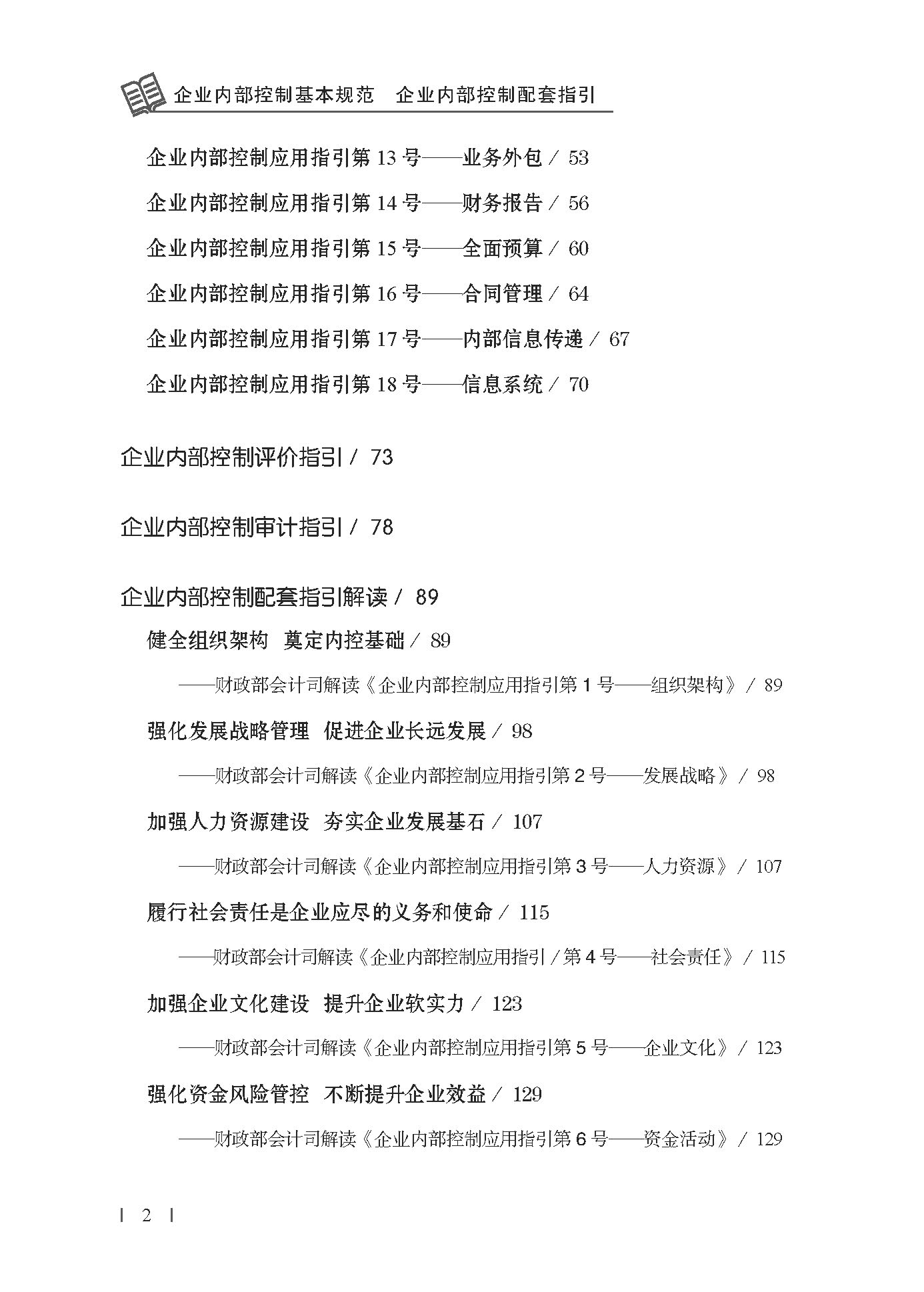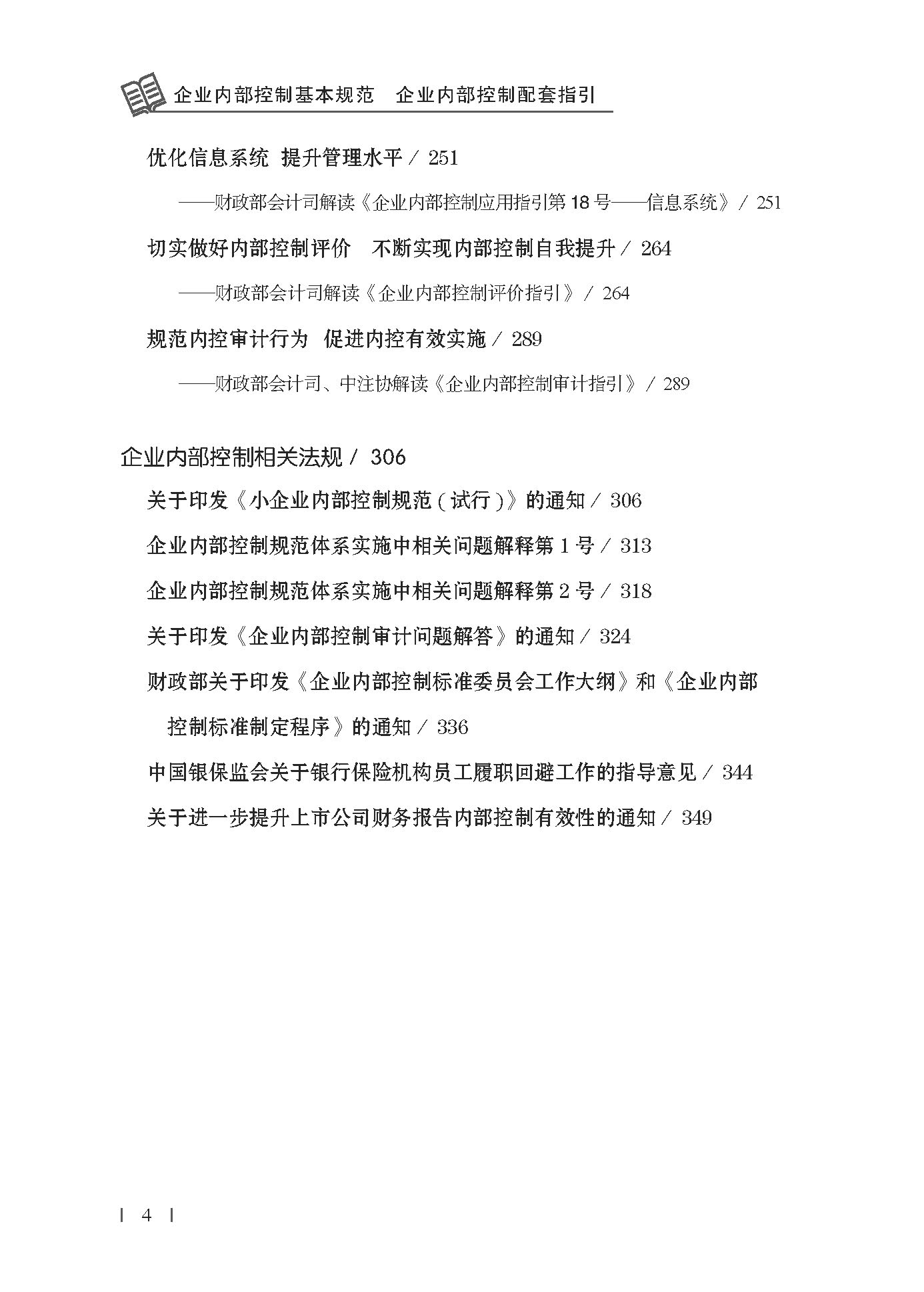 本书是在《企业内部控制基本规范企业内部控制配套指引(2024年版)》的基础上进行修订,内容包括六个部分,第一部分为企业内部控制基本规范;第二部分为企业内部控制应用指引,分别为企业内部控制应用指引第1号至第18号;第三部分为企业内部控制评价指引;第四部分为企业内部控制审计指引;第五部分为企业内部控制配套指引解读;第六部分为企业内部控制相关法规,包括企业内部控制规范体系实施中相关问题解释第1号、企业内部控制规范体系实施中相关问题解释第2号等。本书可帮助上市公司和大中型企业尽快对本单位的内部控制制度和规章制度进行梳理和优化,从而尽早建立健全符合本单位实际情况的内部控制体系。本书可作为各级、各类内部控制规范宣传、学习和培训的辅助教材。