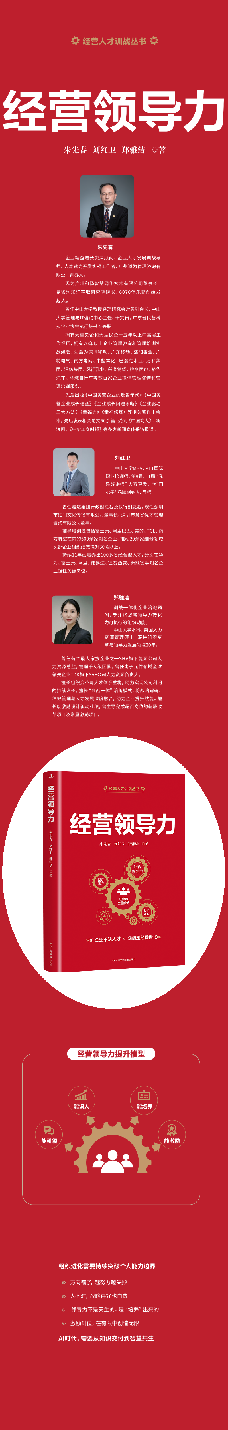 本书聚焦经营领导力核心,从组织能力破题,以;能引领、识人、培养、激励为纲,结合;方法十案例十工具构建经营领导力体系,解决识人、培养、激励痛点,是企业突破发展瓶颈的实战手册。