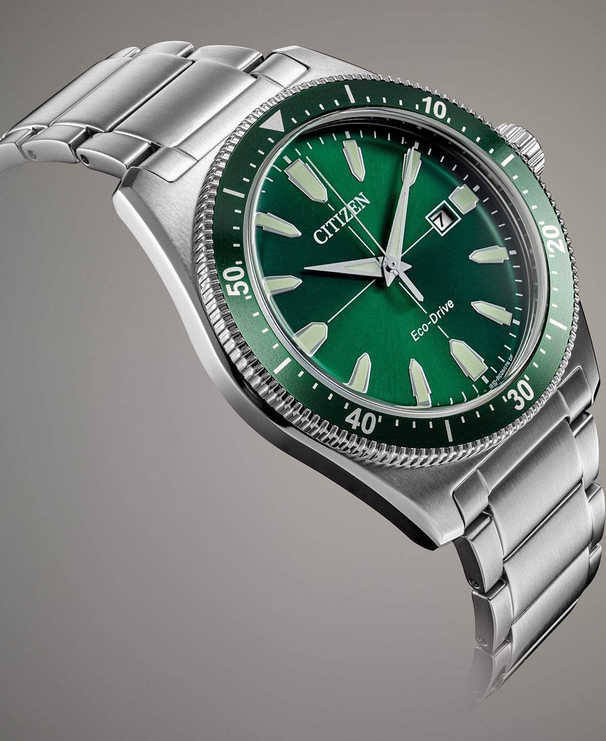 翡翠绿表盘和表圈Eco-Drive的阳光动力Brycen手表经典的不锈钢款式
