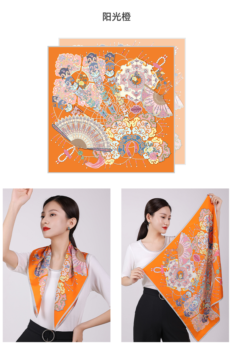 宫里的世界&上海故事 锦扇添花真丝方巾