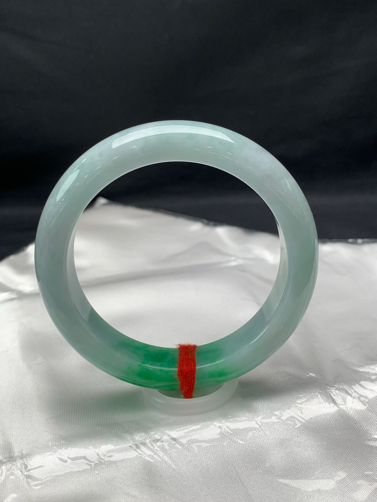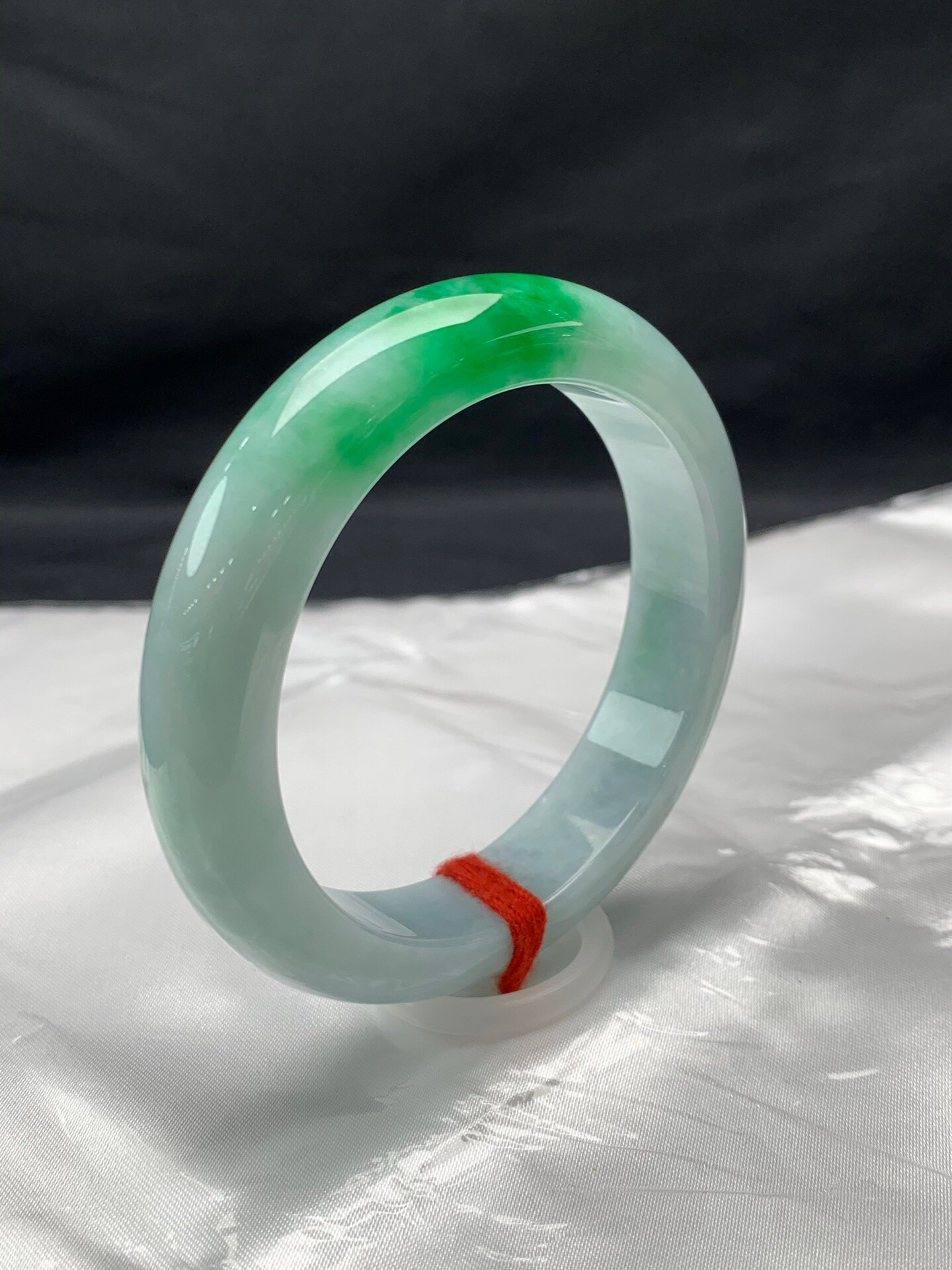 612265,54.8圈口,细糯飘绿正圈平安镯,蓝底色飘辣绿,颜色吸睛,底子细腻,完美,尺寸:54.8-12.8-8.8,超值价💰32500