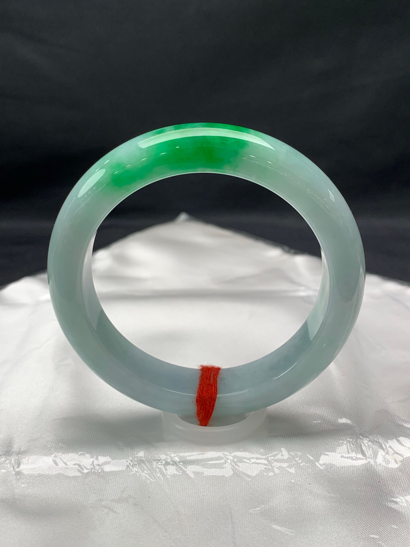 612265,54.8圈口,细糯飘绿正圈平安镯,蓝底色飘辣绿,颜色吸睛,底子细腻