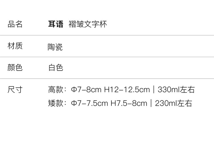 【新版】Eryu Ceramics耳语陶瓷工作室 褶皱系列 文字 杯