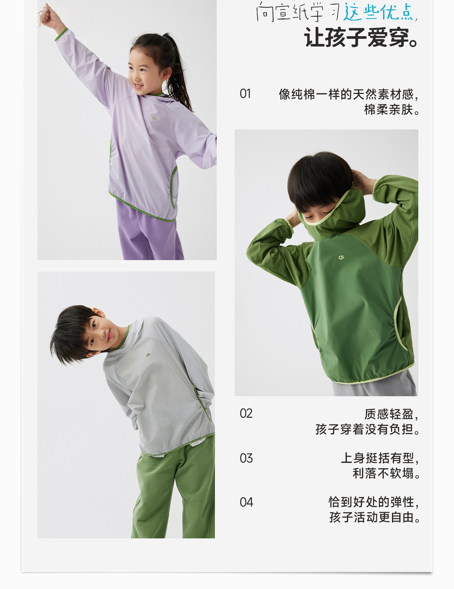 【6折特惠】幼岚「宣纸速干」柔软亲肤连帽长袖T恤24春季新款儿童男女童T恤ZY