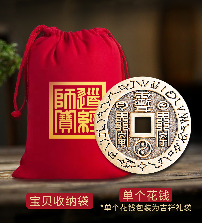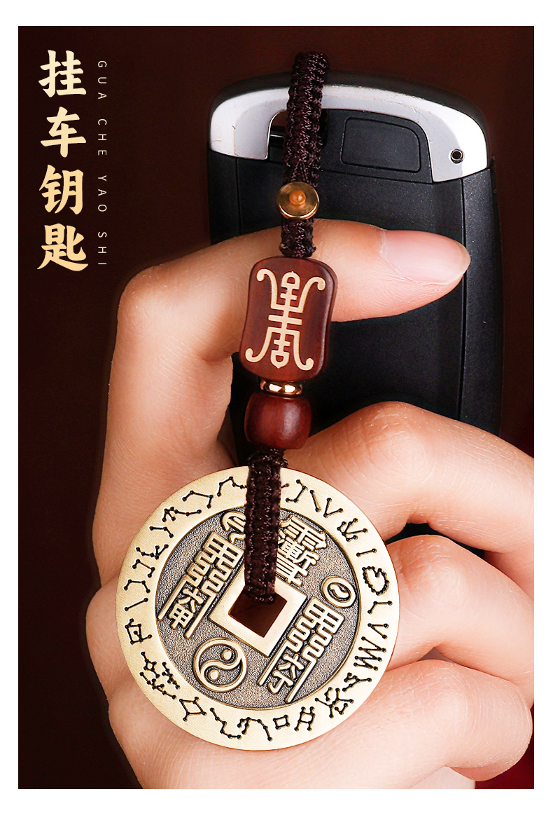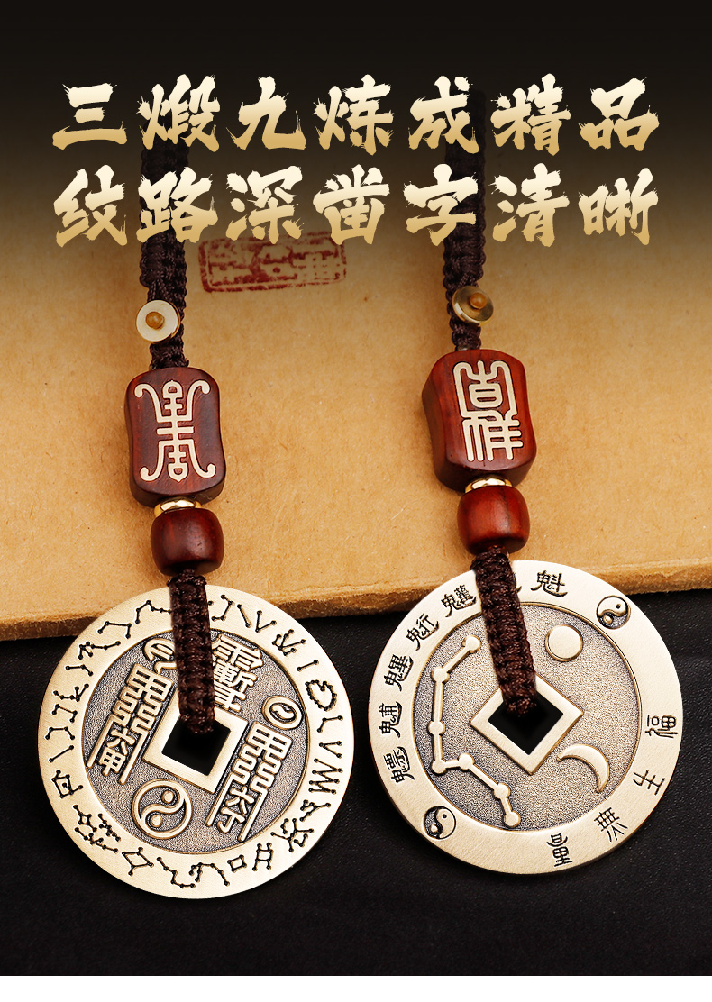 黄铜朱砂五雷钱挂饰