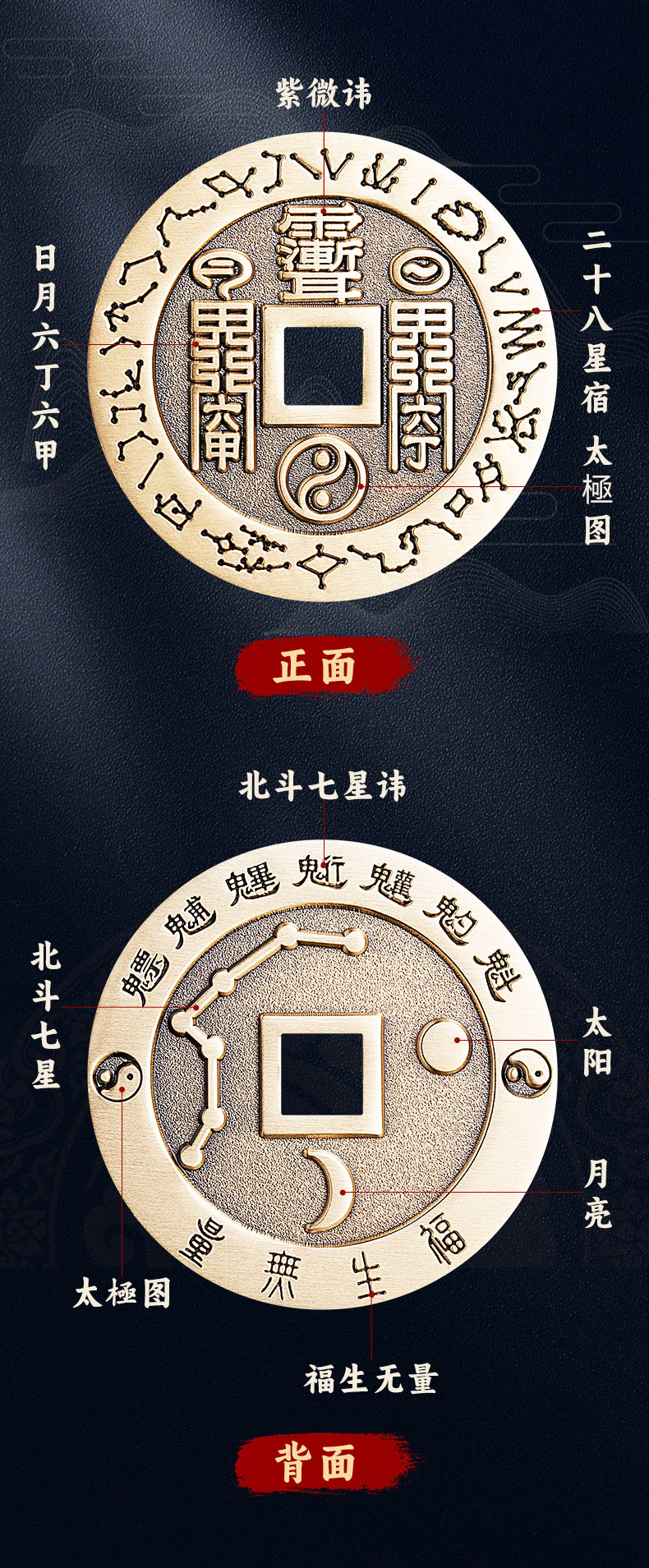 北斗七星六丁六甲铜钱挂饰