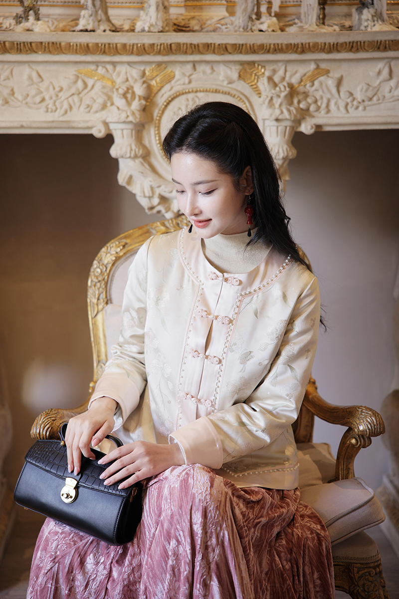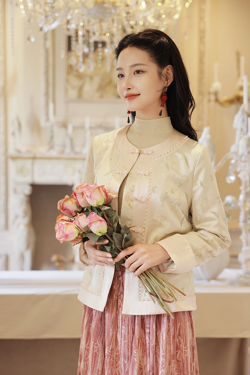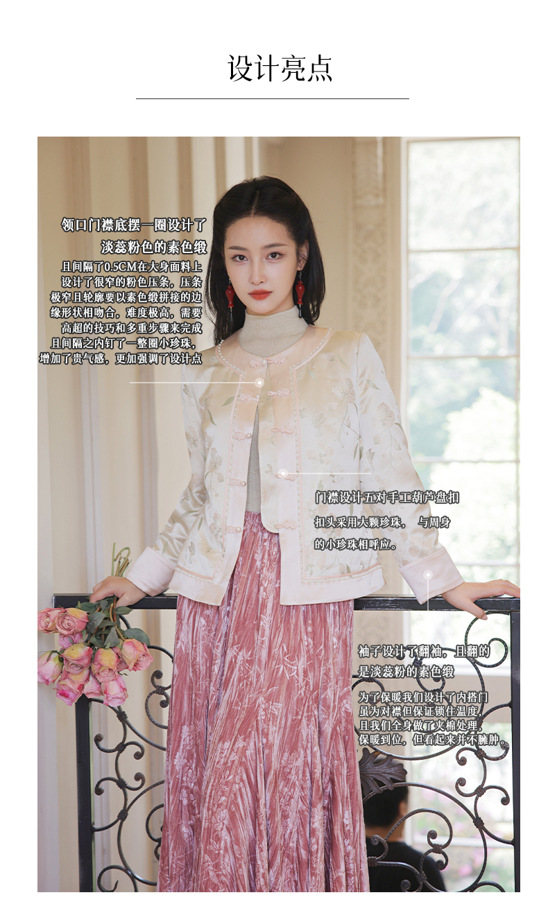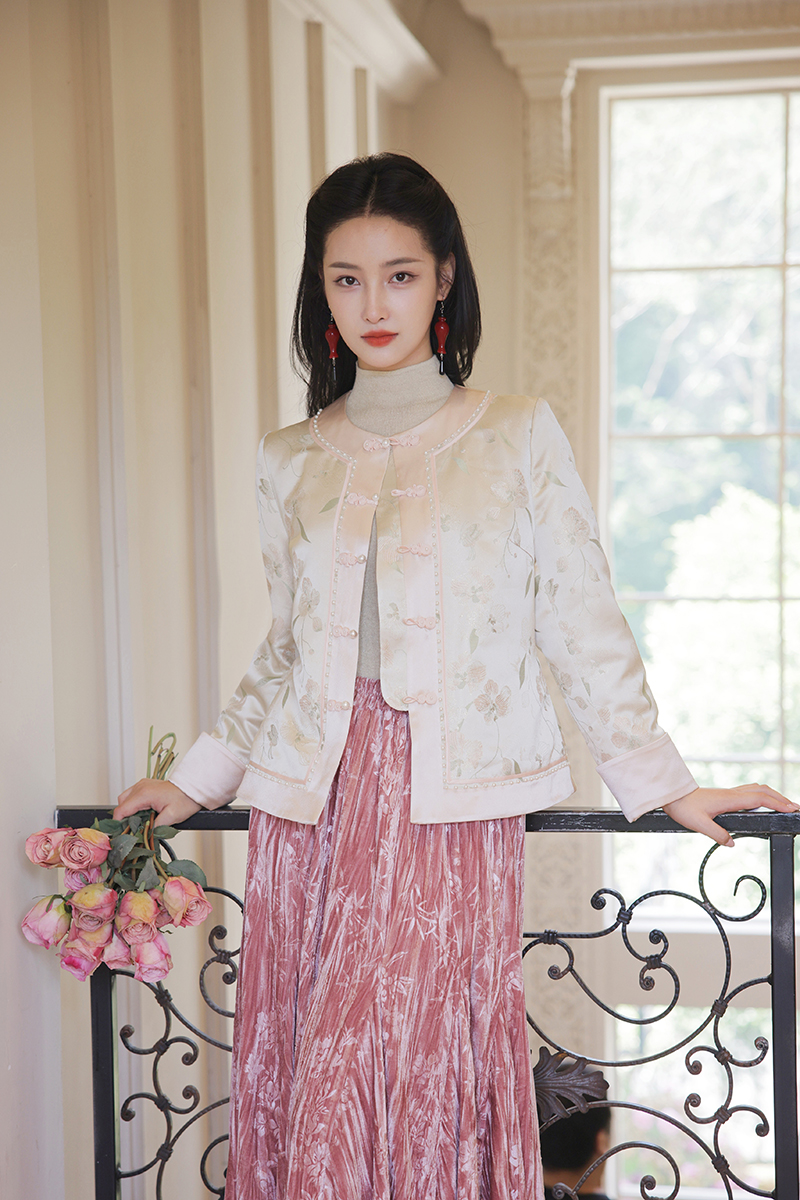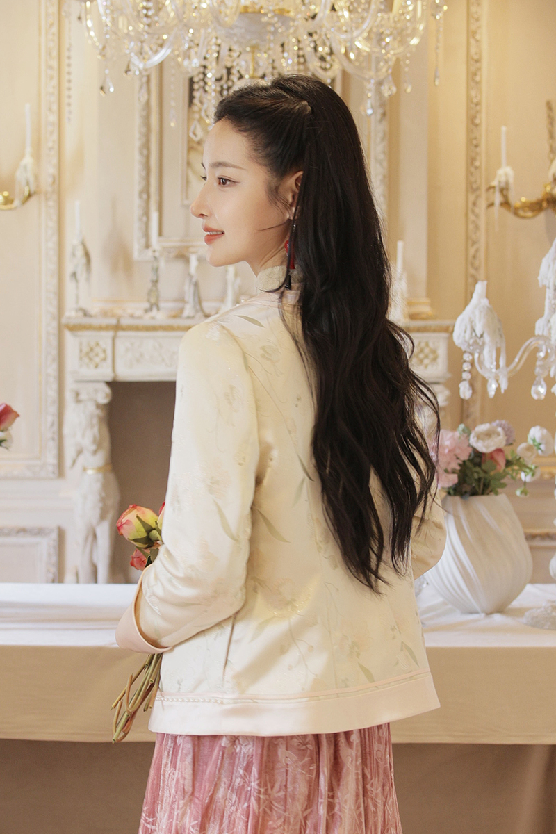 这件新中式呀,很优雅、很端庄,而且一点都不老气,反而呢 有一种少女气息~~