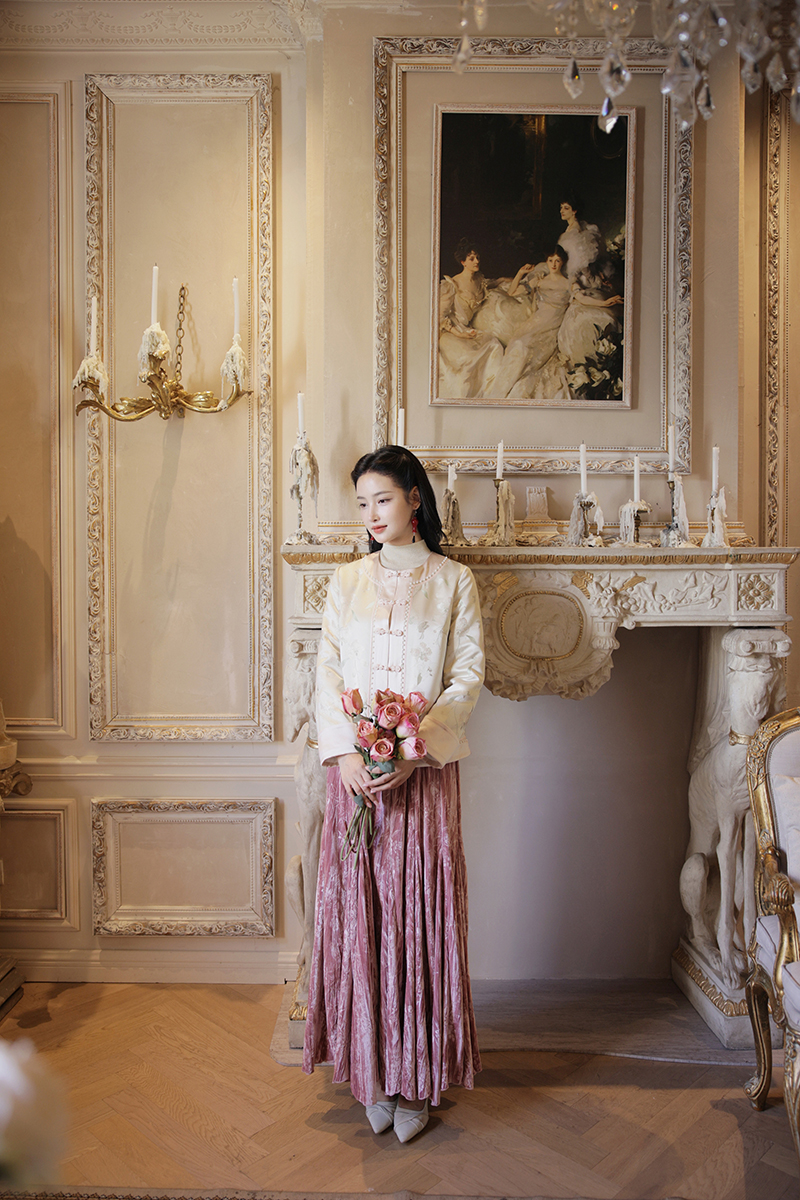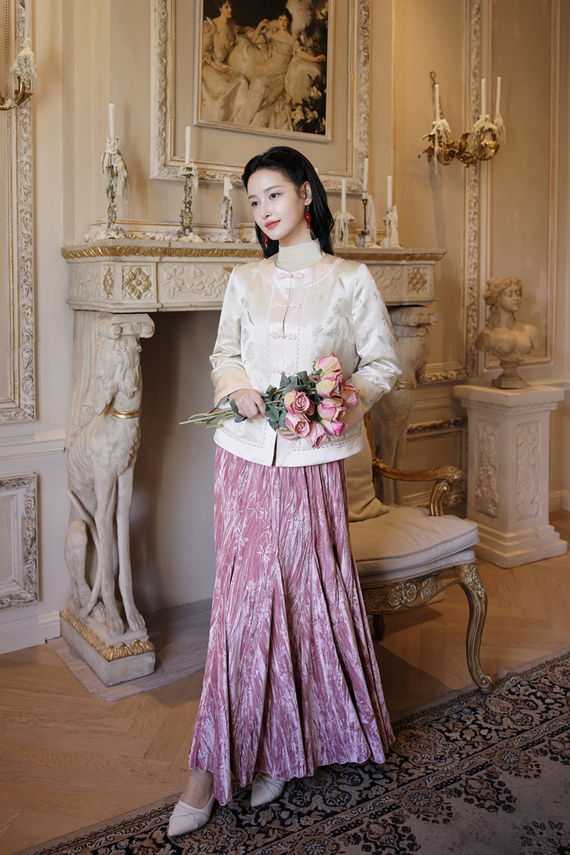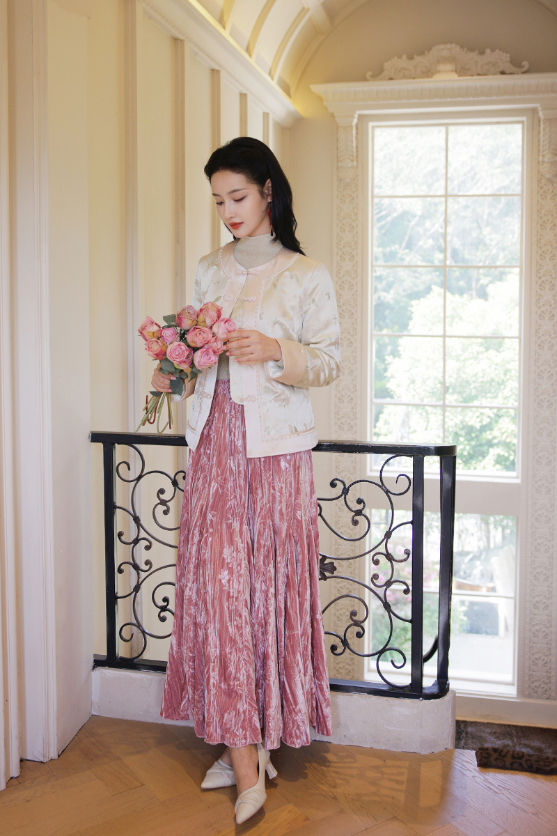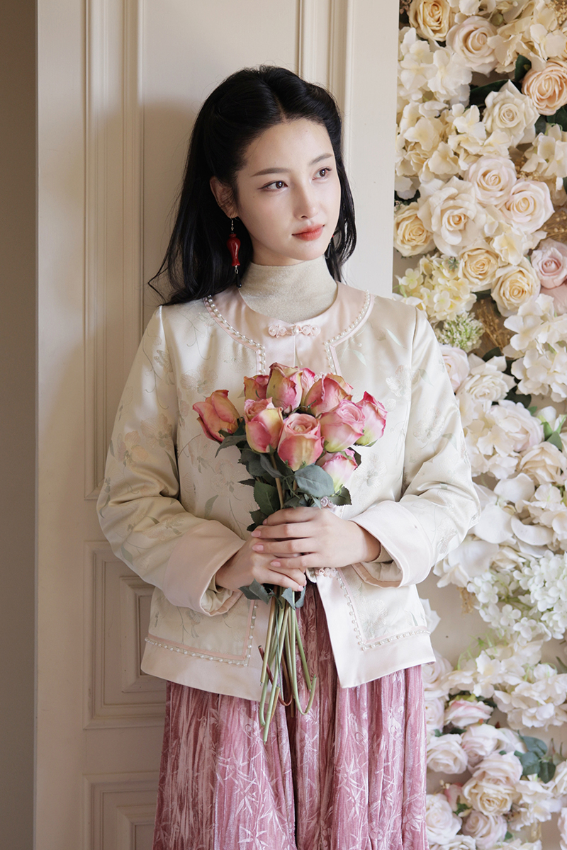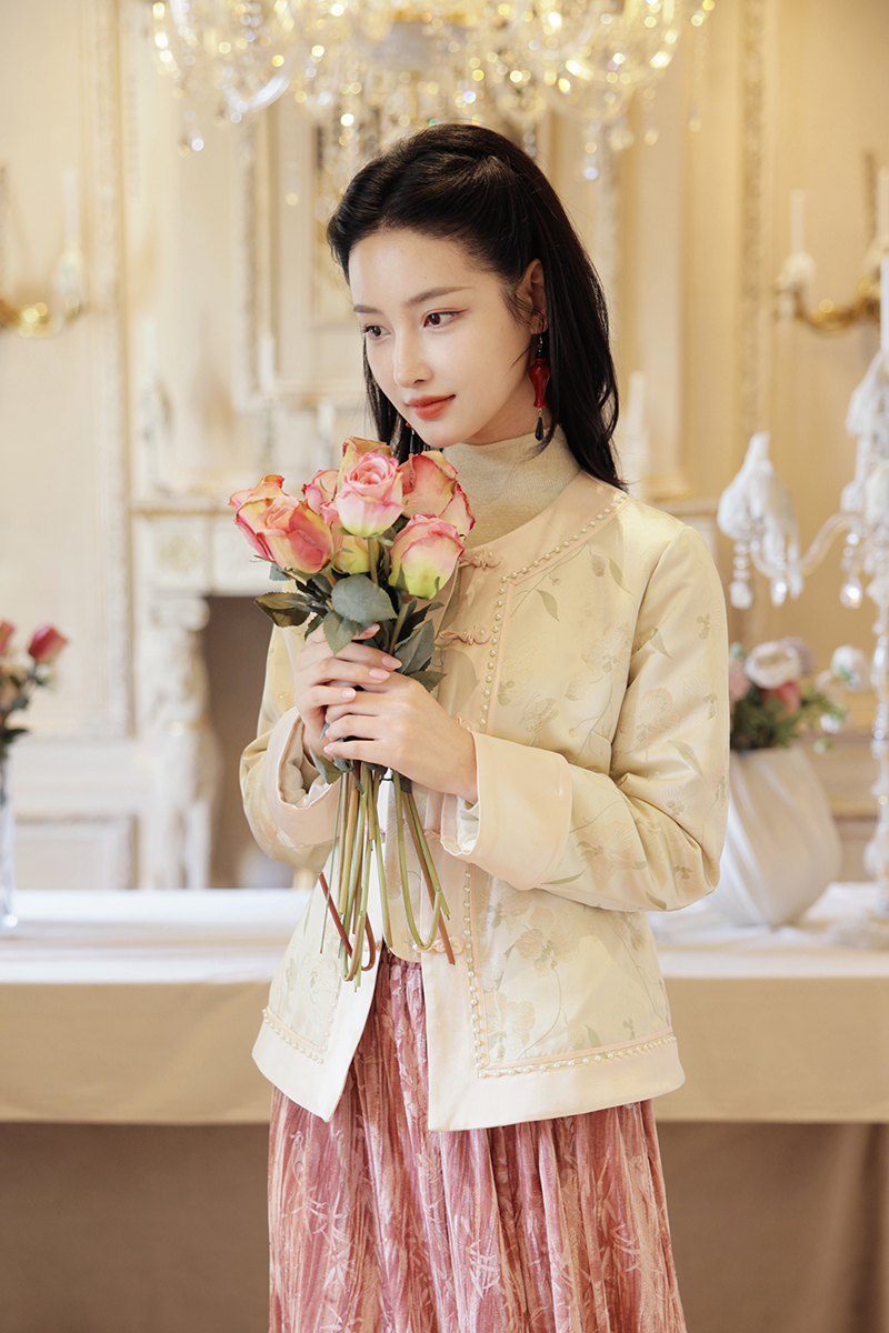 这件新中式呀,很优雅、很端庄,而且一点都不老气,反而呢 有一种少女气息~~