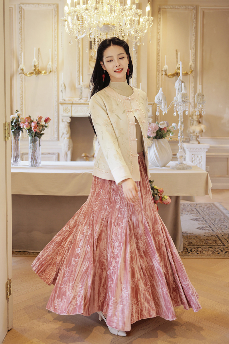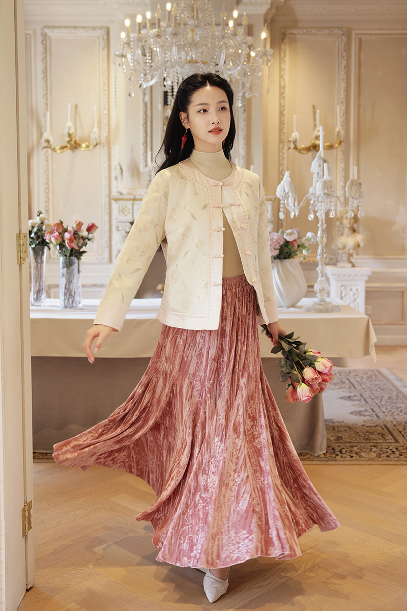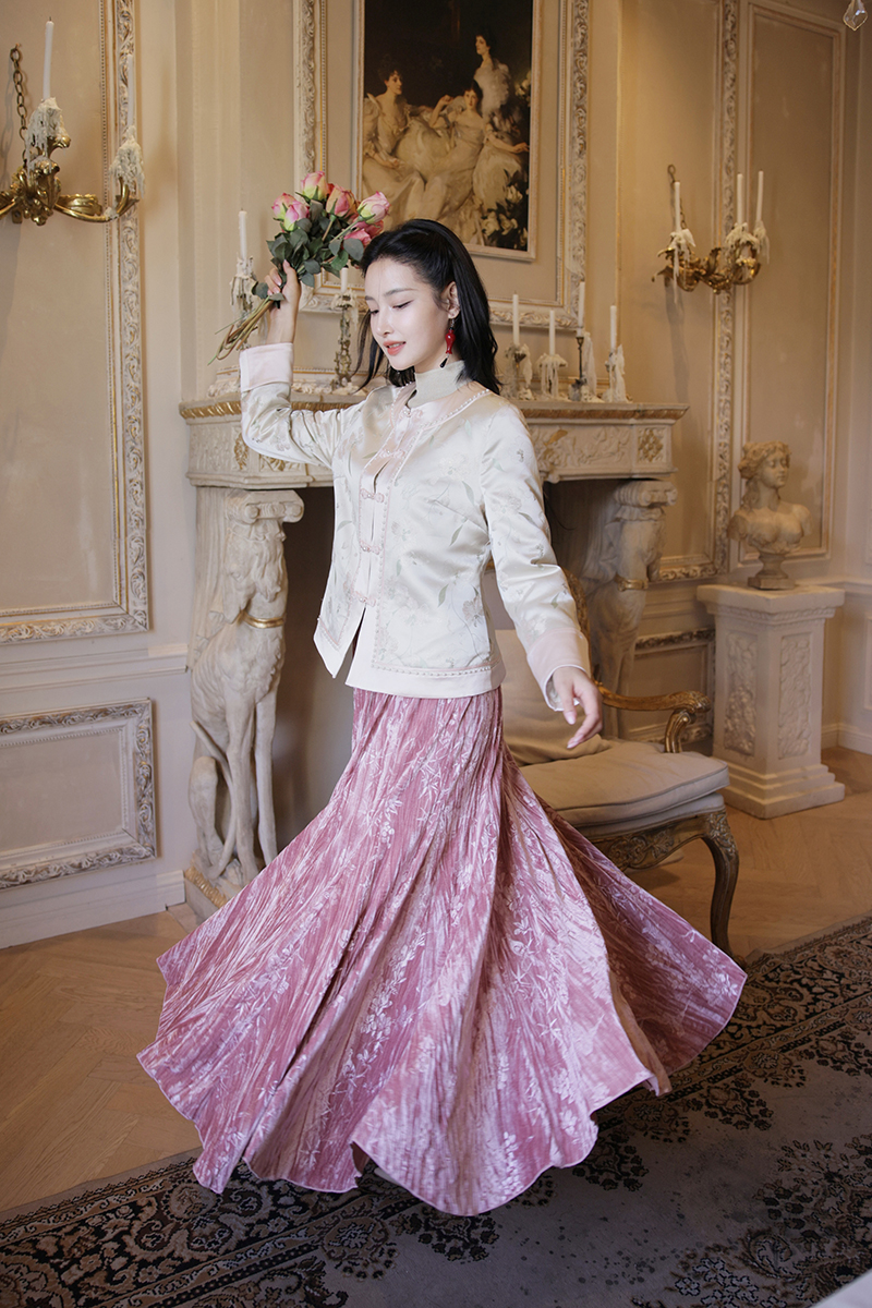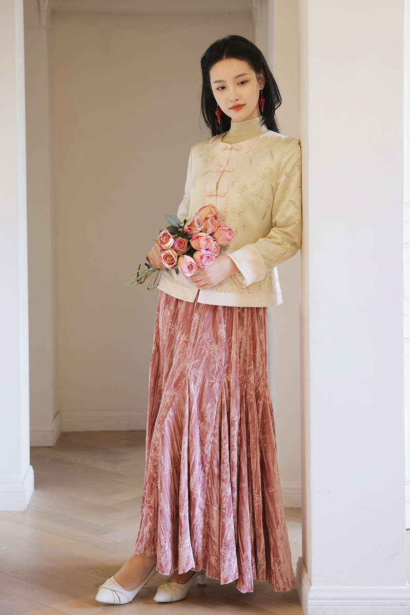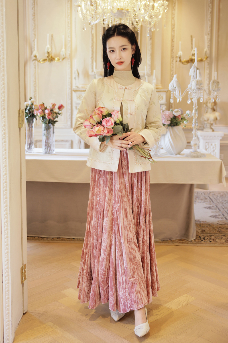 这件新中式呀,很优雅、很端庄,而且一点都不老气,反而呢 有一种少女气息~~