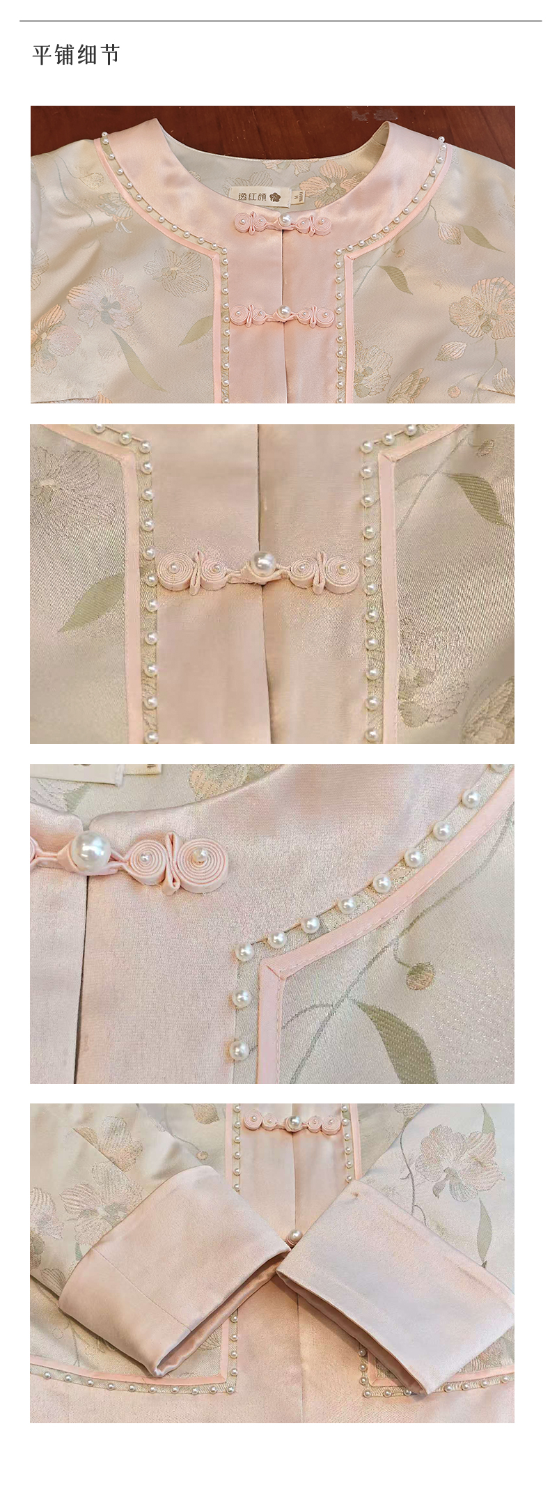 珍珠包边:选用3mm珍珠,光泽似月下露珠,与缎面辉映出复古的富贵感~~