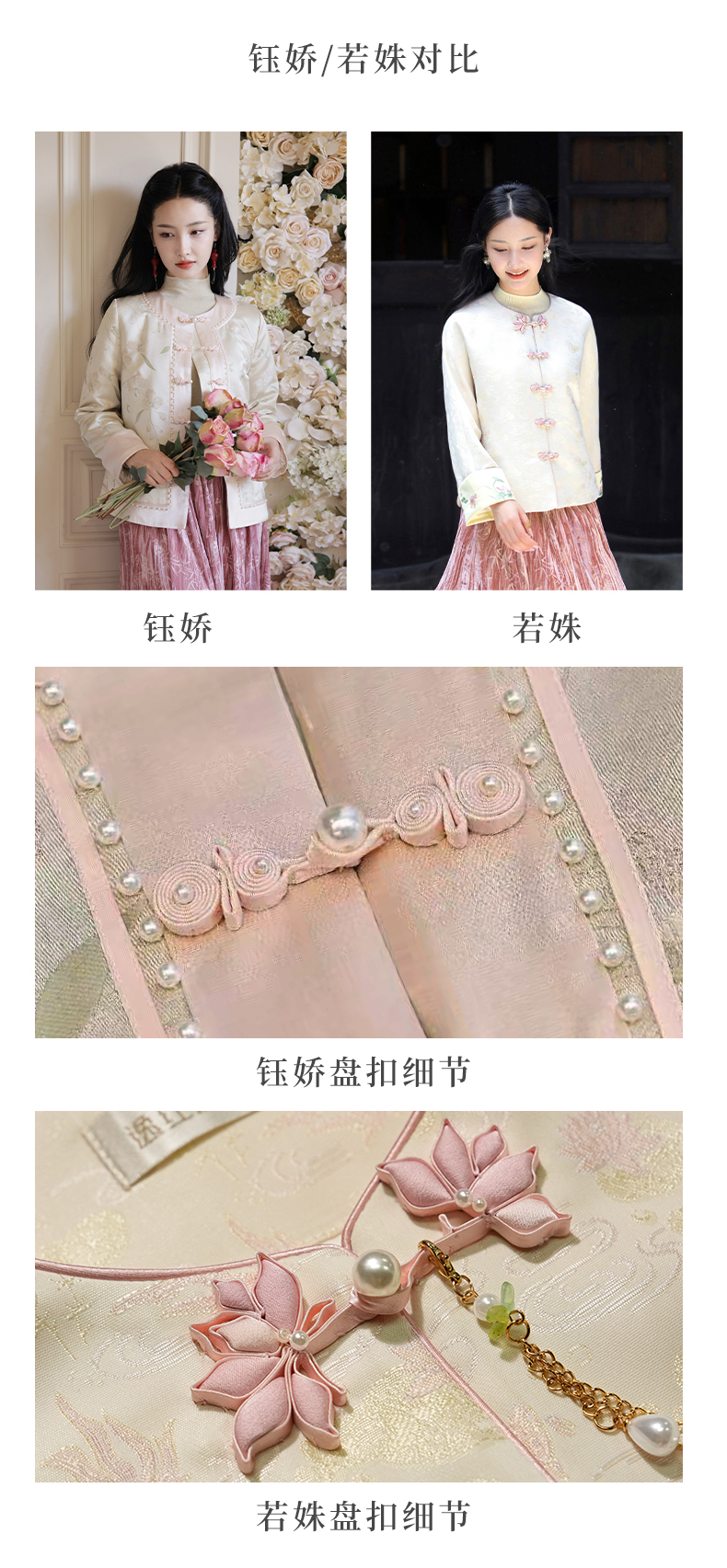 4. 细节:喜欢重工刺绣选【若姝】;喜欢温婉粉色镶边的选【钰娇】。
