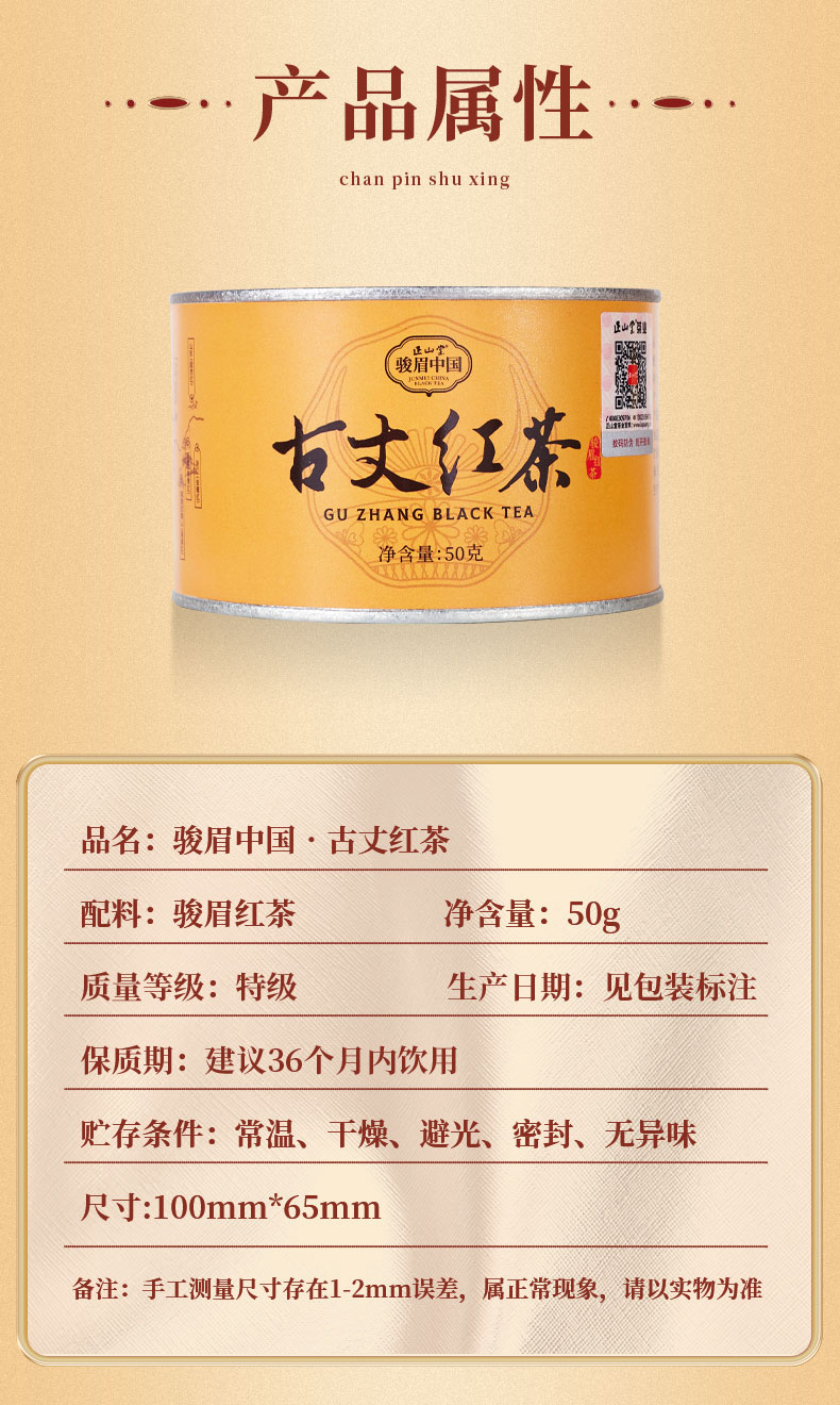正山堂 古丈红 骏眉中国产区茶系列 湖南红茶特级茶叶罐装50g