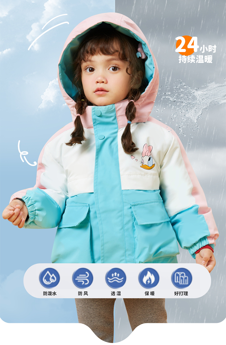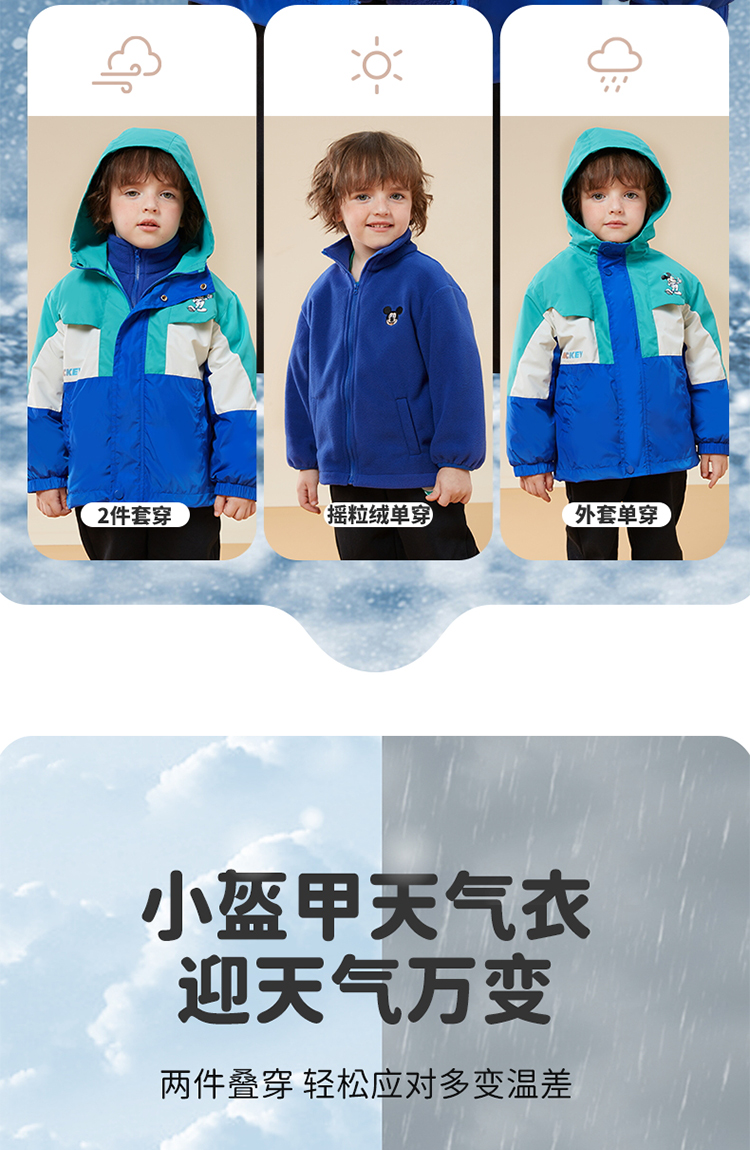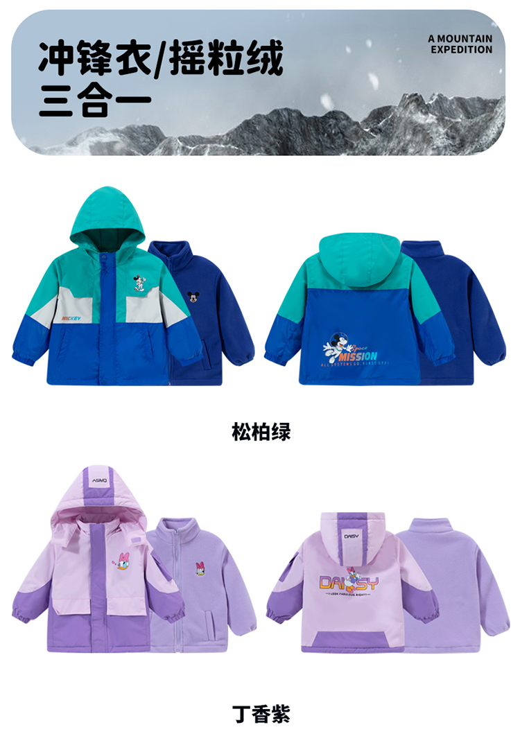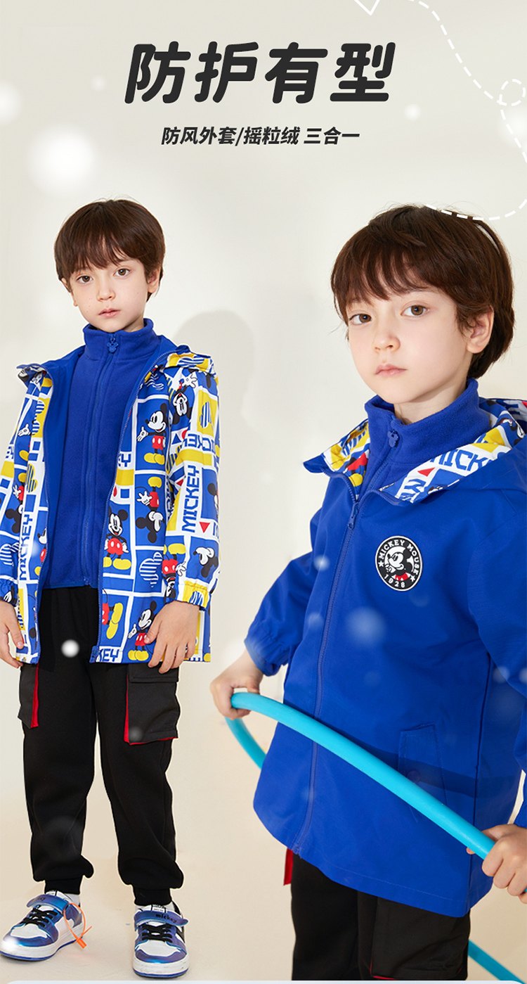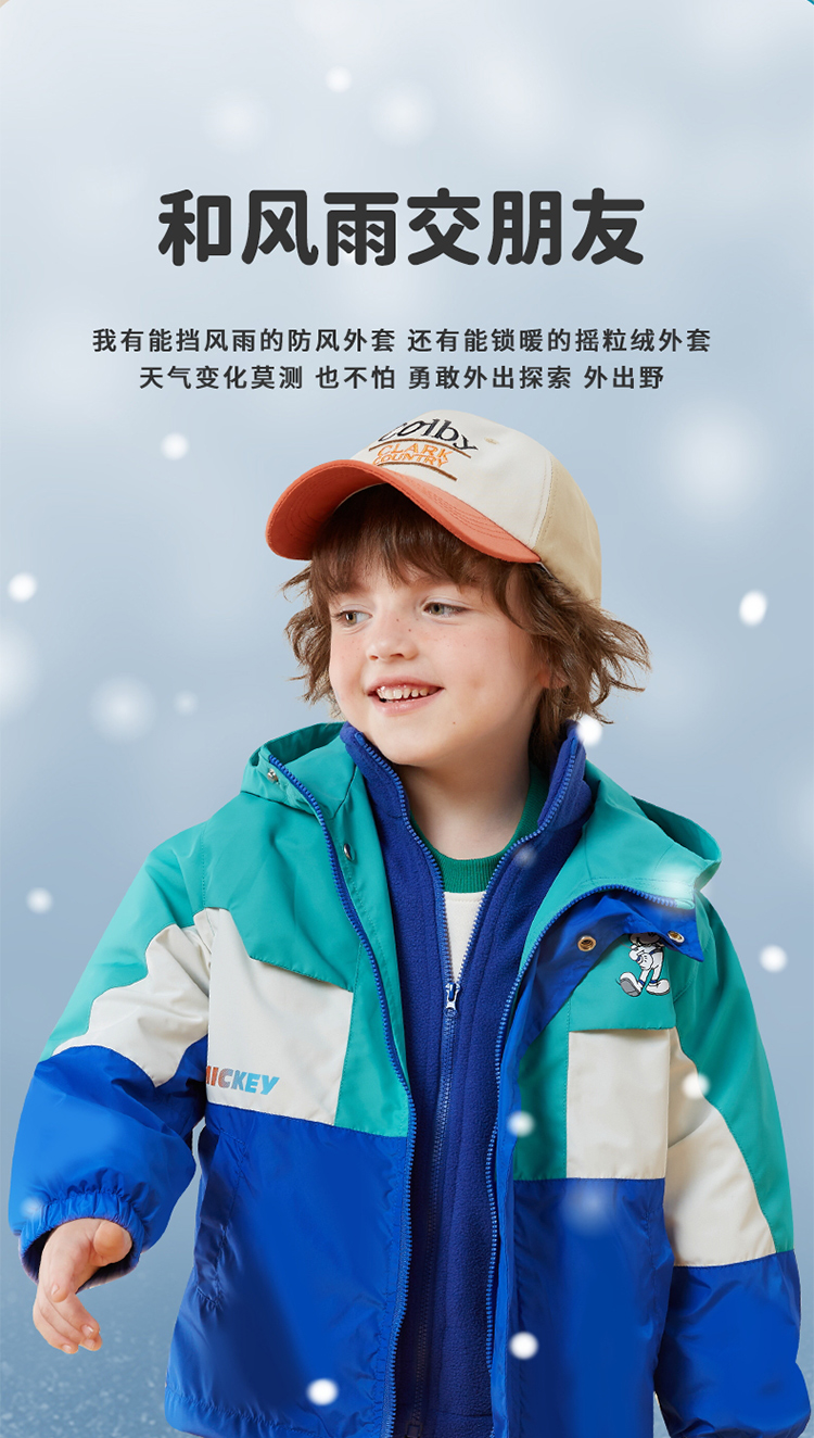 秋冬女童防风保暖户外外套+摇粒绒内搭防泼水两件套
