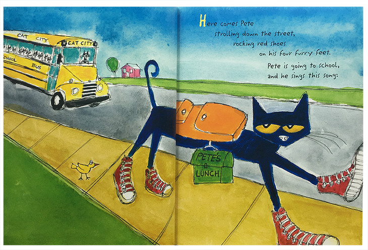 Pete the Cat是美国很受欢迎的儿童情绪绘本,销量已超过950万册,始终稳居美国亚马逊畅销榜。主人公是一只深蓝色皮毛、黄色外套、红白相间、个性洒脱独特的小猫Pete,通过有趣的故事和多彩的插图,展示了这只小猫变得自信、乐观、勇敢的各种生动故事,让孩子学会接纳自己、直面困难、乐于分享!