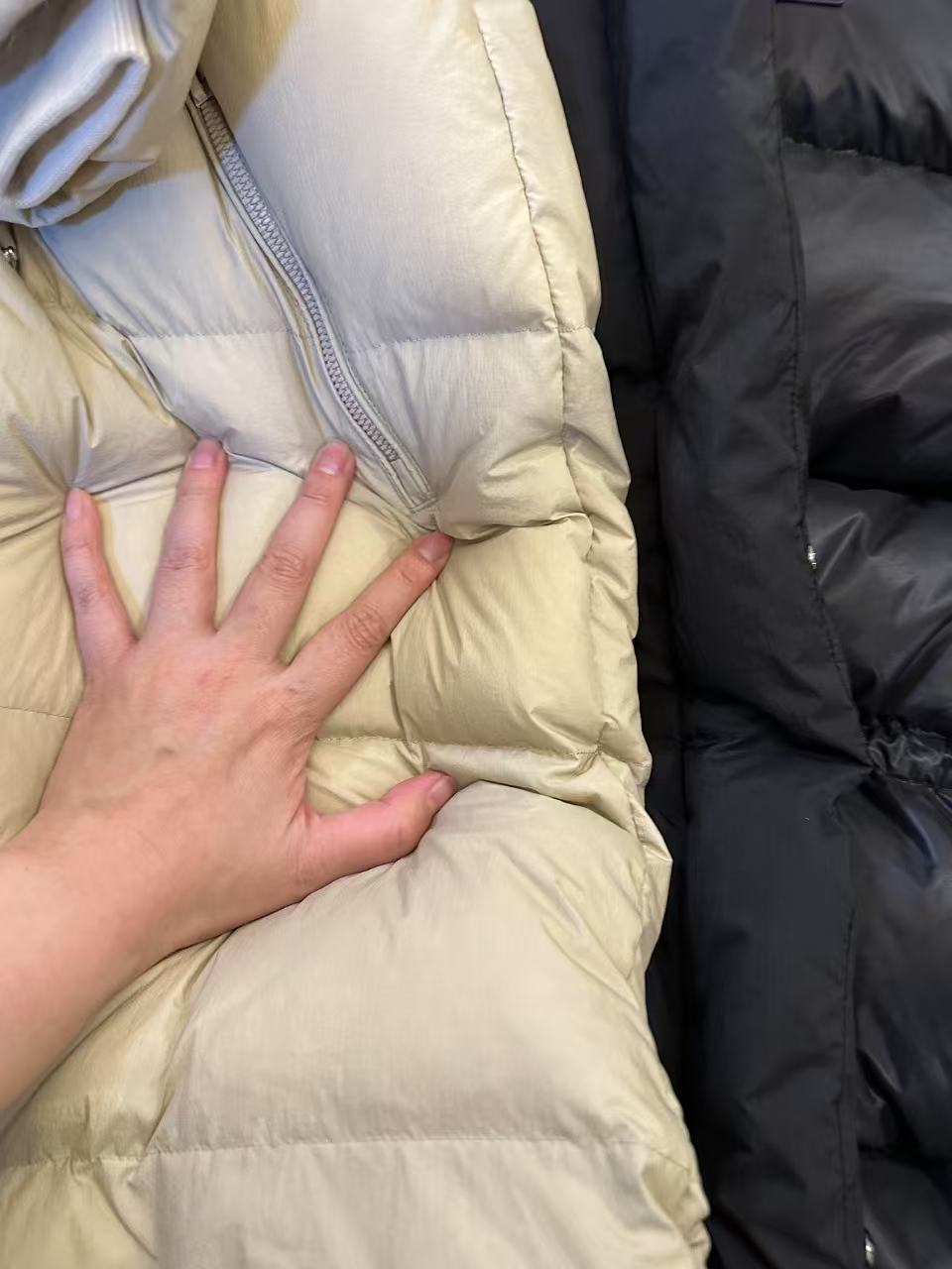 填充💪90%白鸭绒,RDS认证的客供可追溯大朵绒,✌800D蓬松度,S码充绒量达到300g左右了,超级蓬松饱满,保暖度卓越,拿到可以感受下它的蓬松度和回弹力。
