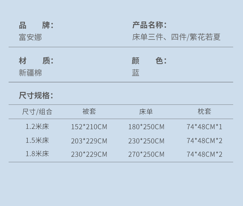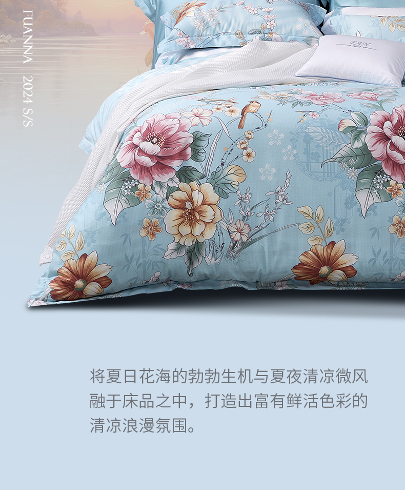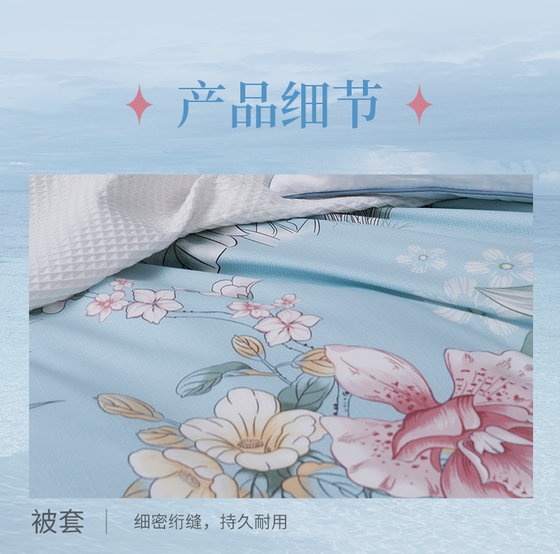【6F】富安娜床单四件/繁花若夏,蓝
