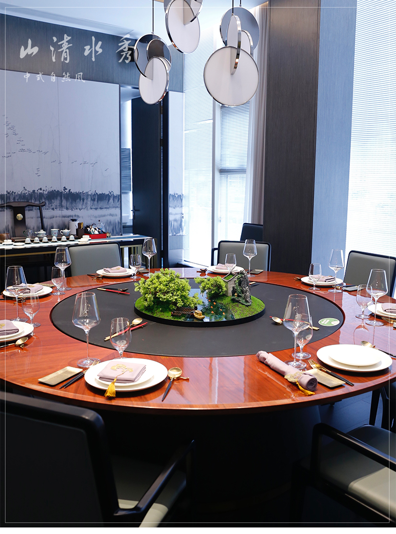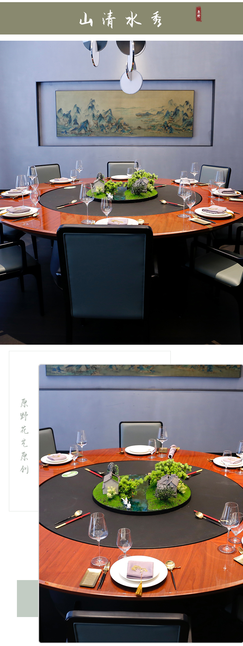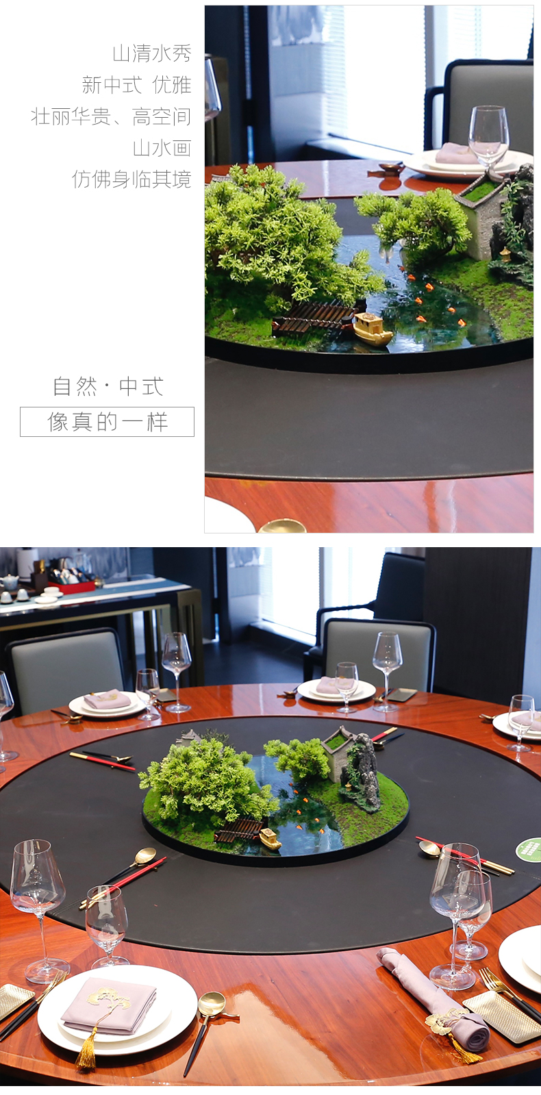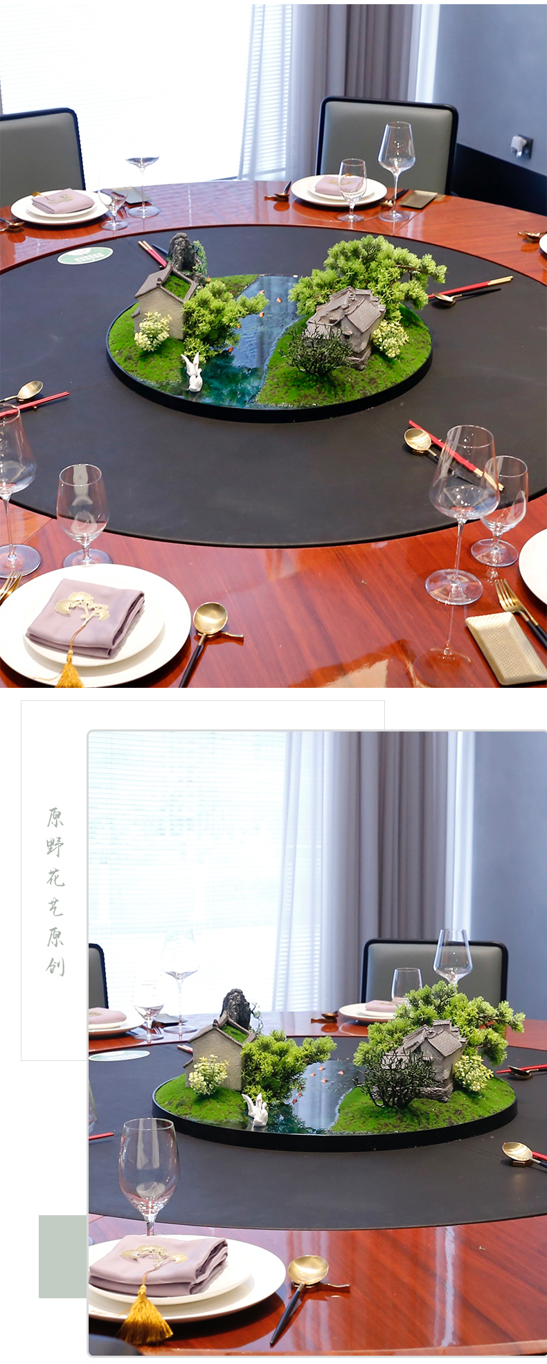 新中式酒店餐桌花摆花高端仿真花包厢转盘微景观摆设件圆桌装饰花