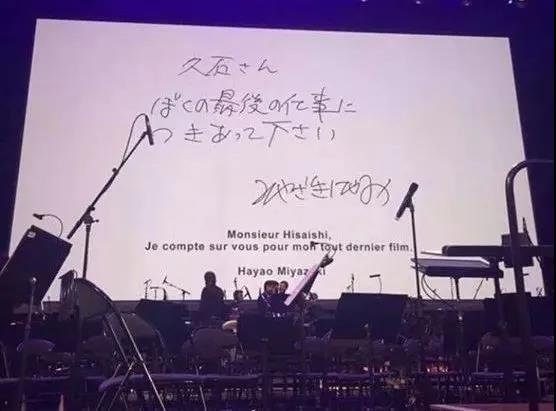 2017年,久石让在巴黎举办了一场音乐会,此时的宫崎骏宣布复出筹备新作品,在音乐会现场,大屏幕上出现了宫崎骏写给久石让的亲笔留言。