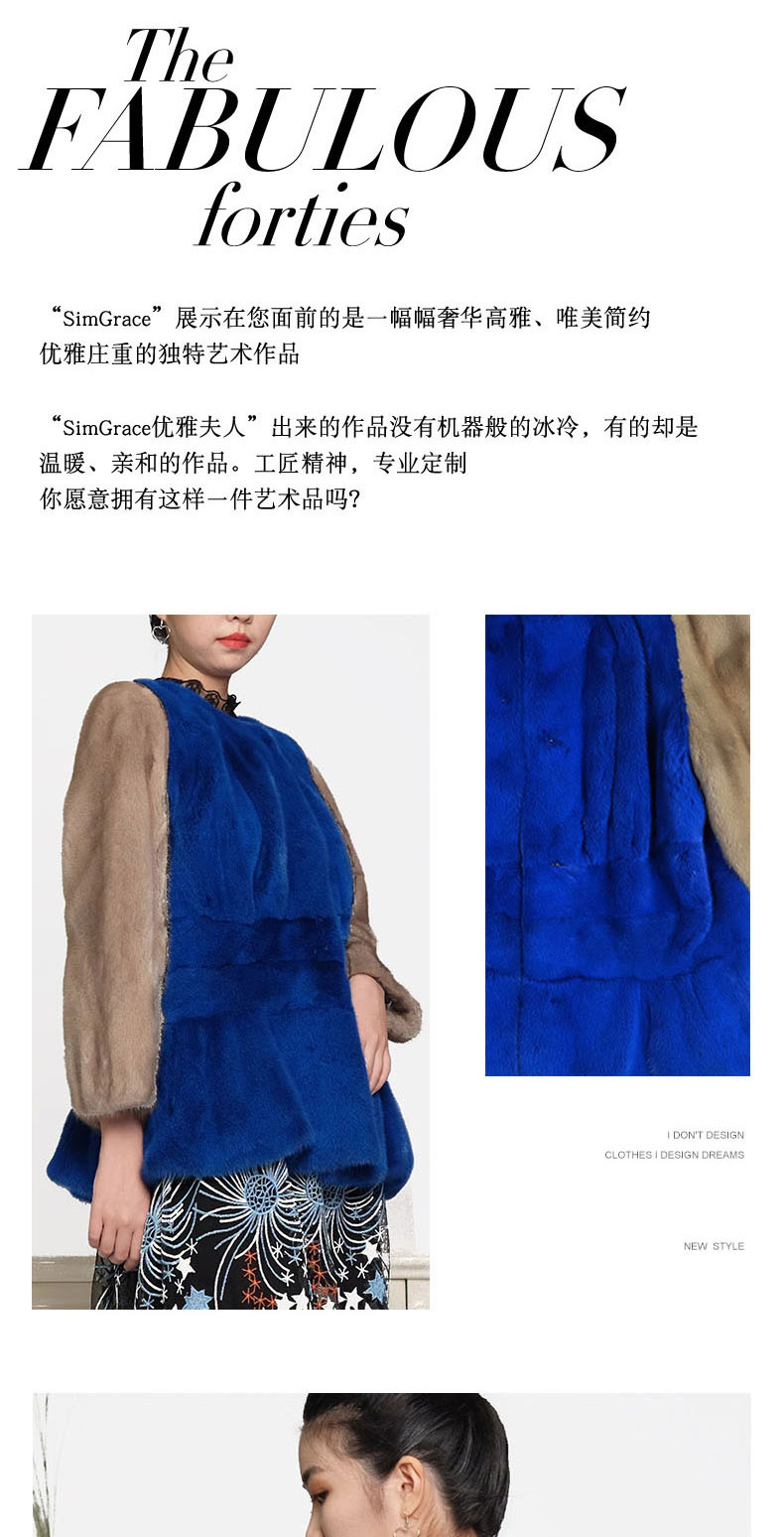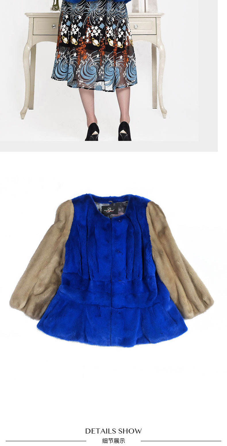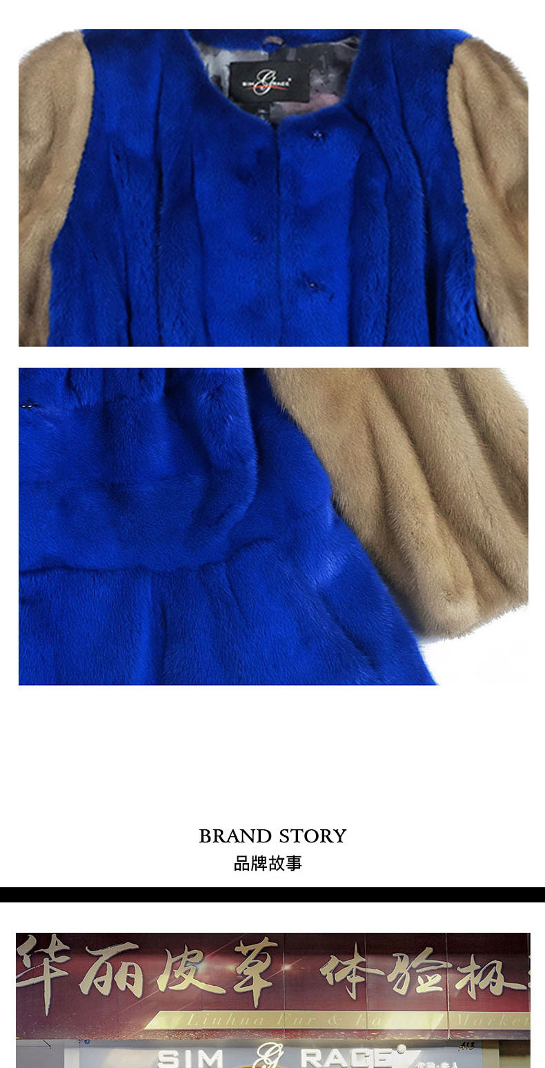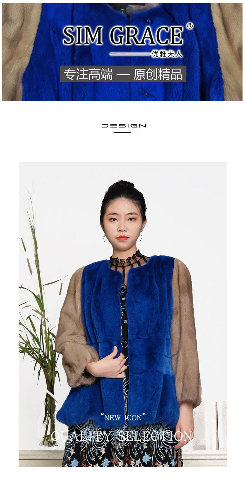 SIM GRACE 优雅夫人 女士高端水貂毛拼色设计时尚无领短款简洁层次分明圆领外套