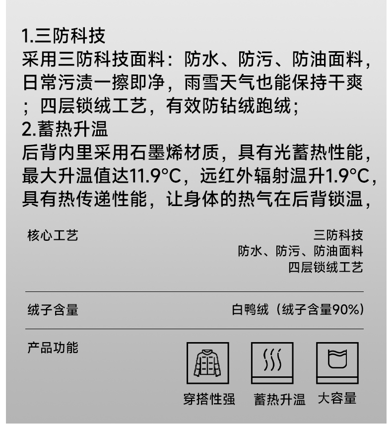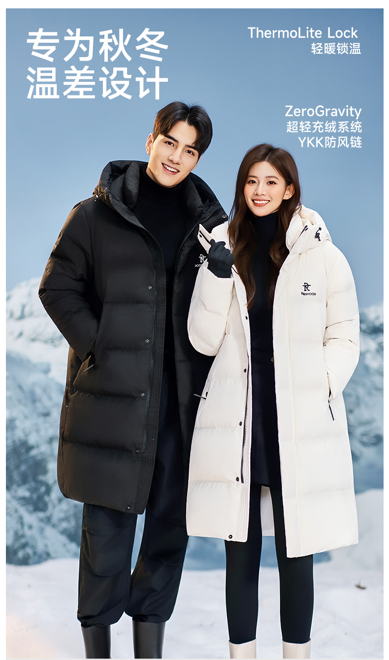 【云感系列】 明星同款 雪辰男女三防 长款羽绒服 (防水、防油、防污)