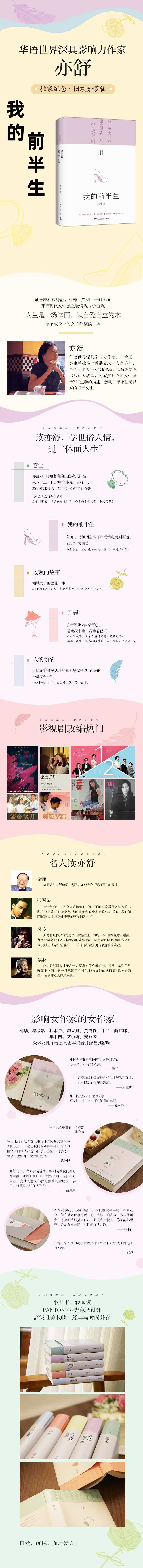 《我的前半生》是亦舒的代表作小说,同时也是靳东、马伊琍主演都市爱情电视剧原著,2017年暑期档上映。_ldquo;我的前半生可以用数十个中国字速记:结婚生子,遭夫遗弃,然后苦苦挣扎为生。_rdquo;故事主角子君,前半生顺风顺水,毕业恋爱结婚,做了十三年全职家庭主妇。三十五岁时却被一个平凡女子夺走丈夫。没有工作、失去家庭和子女,子君的人生不得不重新开始,重新工作、重新生活、重新恋爱_hellip;_hellip;*终重获新生。这一切也正如亦舒所说:_ldquo;我们失去一些,也会得到一些,上帝是公平的。_rdquo;