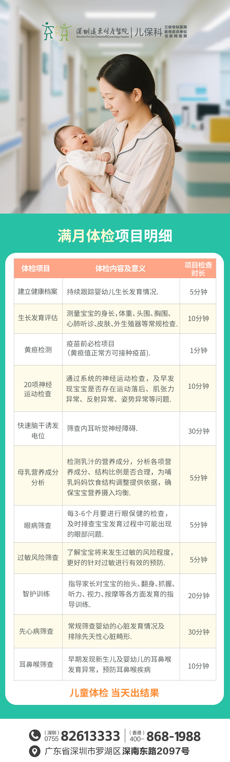 儿童满月体检套餐【免挂号费】-远东罗湖院区-2楼儿保科