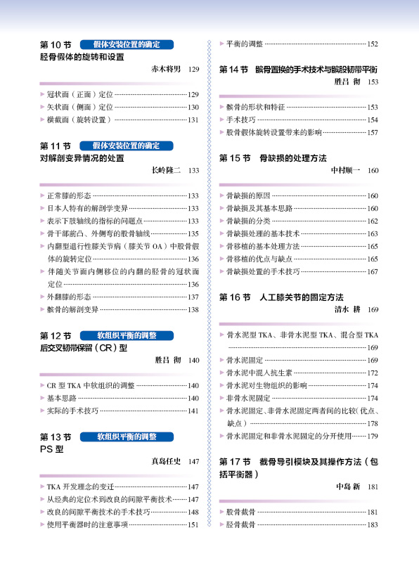 本书涵盖了TKA的基础知识和操作技巧以及并发症的防治,本书作者均为日本临床一线专家,他们将自己的经验总结在这本书中,介绍了TKA的历史、手术方法和技术、最先进的诊断技术、病理特异性的治疗选择,本书在手术方法、切口显露以及各种假体的设计安装方面都进行了详细的介绍,特别是在手术技术方面非常值得医师们参考学习。这本书可以为你的临床实践提供实用的指导。此外,我们用各种各样的插图解释了相关要点。