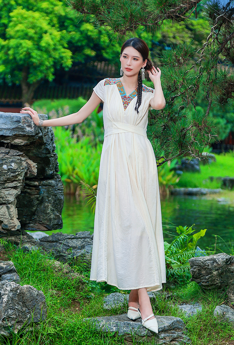 和铃刺绣提花连衣裙| 杨丽萍老师同款| 现货加急发