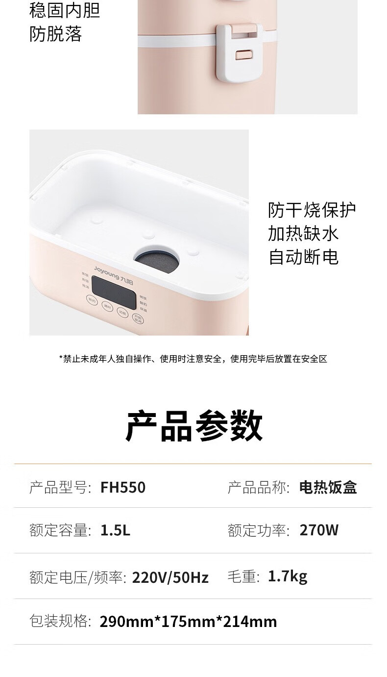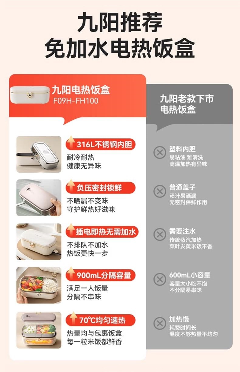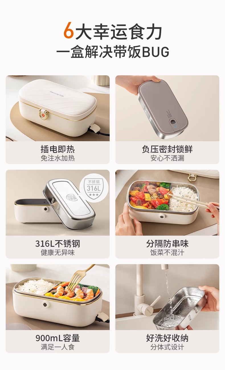 九阳免注水电热饭盒电加热饭盒上班族学生加热饭菜便携便当盒餐盒
