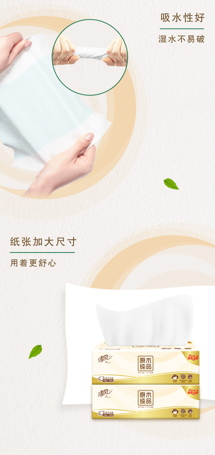 【到手4包】清风原木纯品抽纸3层100抽/包 4包/提 BR42SCE