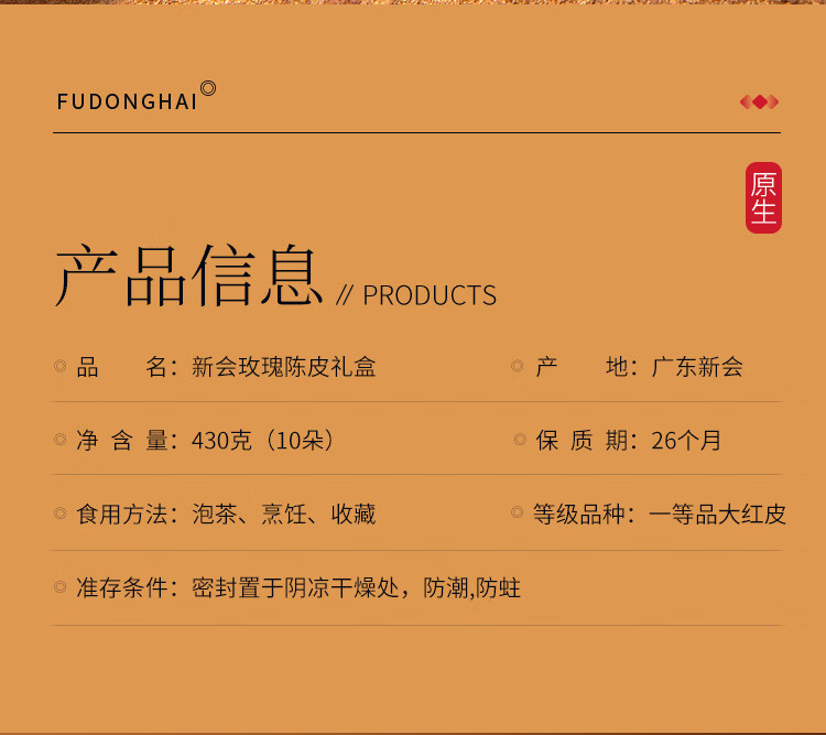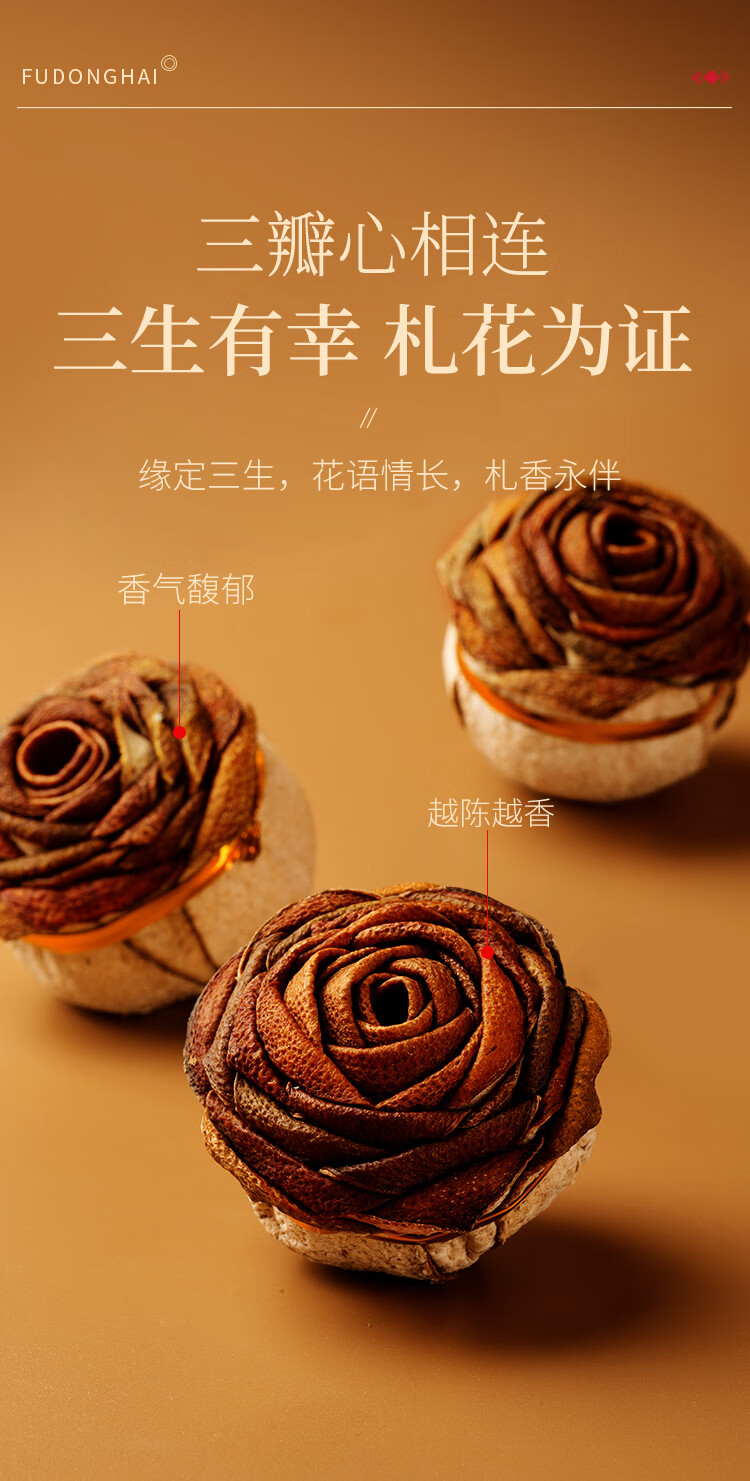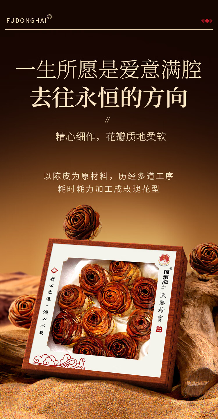 福东海 新会陈皮玫瑰花430克礼盒 大红皮新会陈化老树陈皮伴手礼典藏收藏款