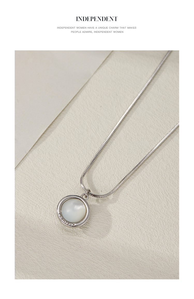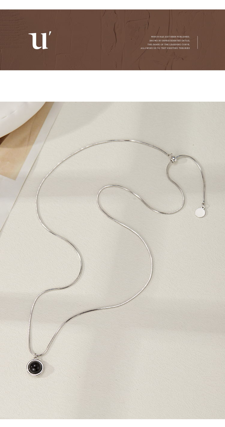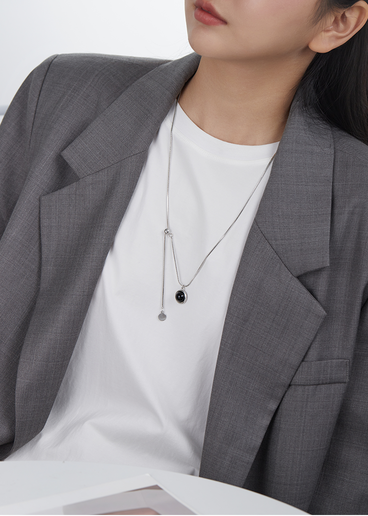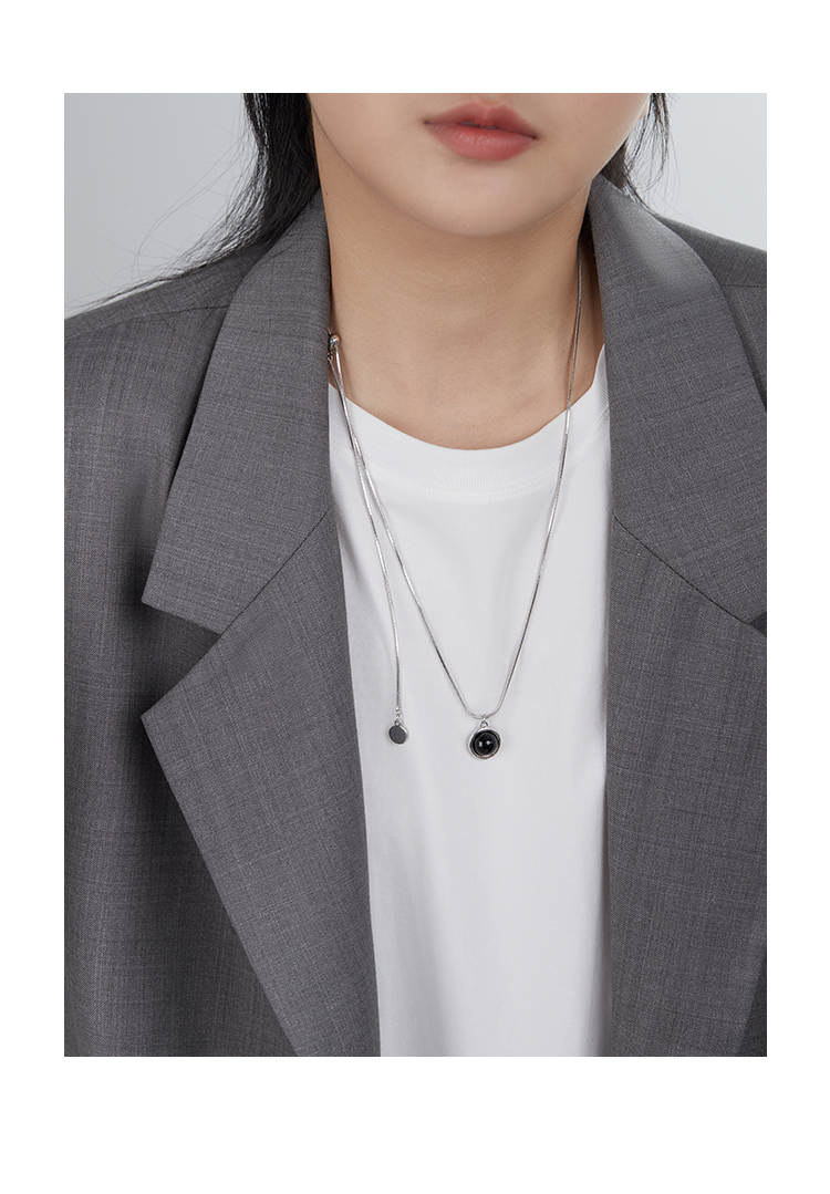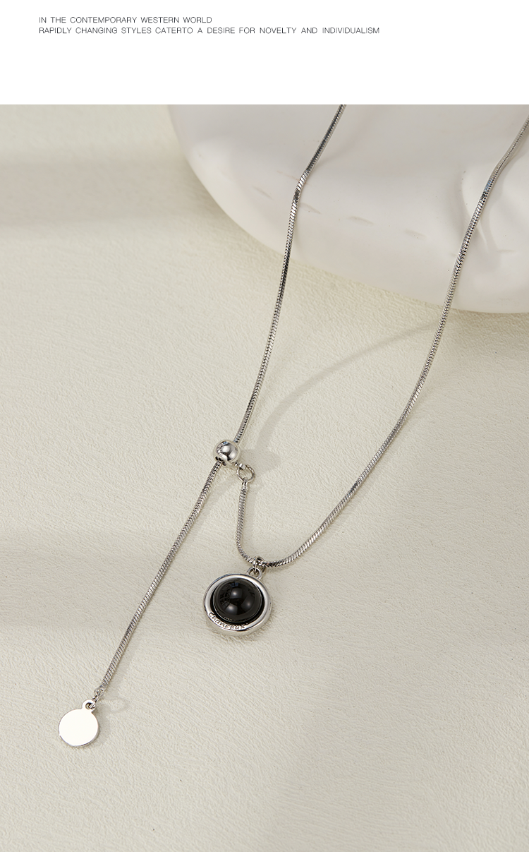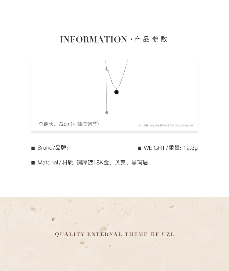 Oflye潮流饰品 天然贝母黑白圆形双面几何吊坠时尚抽拉设计长款项链